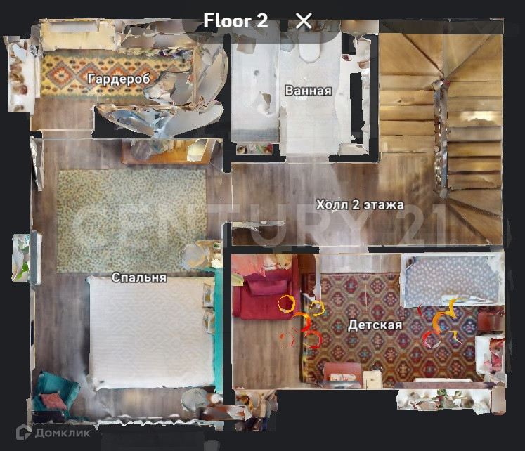 2-й этаж: 2 спальни, гардероб, санузел с ванной.