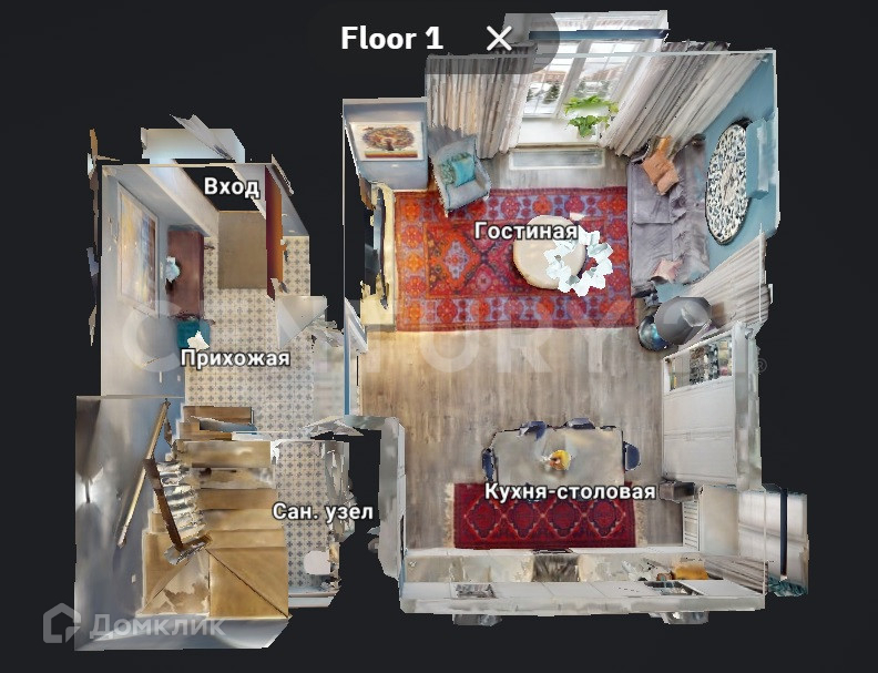 Планировка: 1-й этаж: прихожая, гостиная, кухня, санузел.