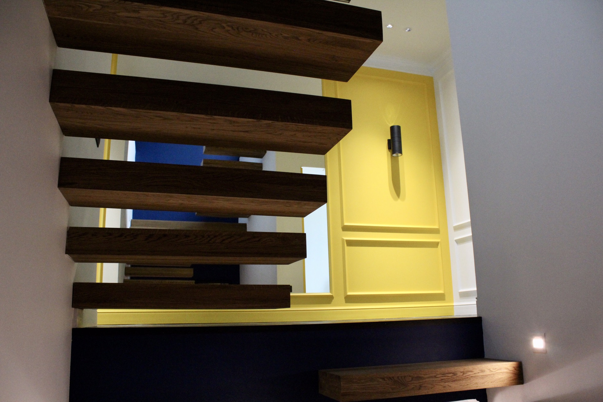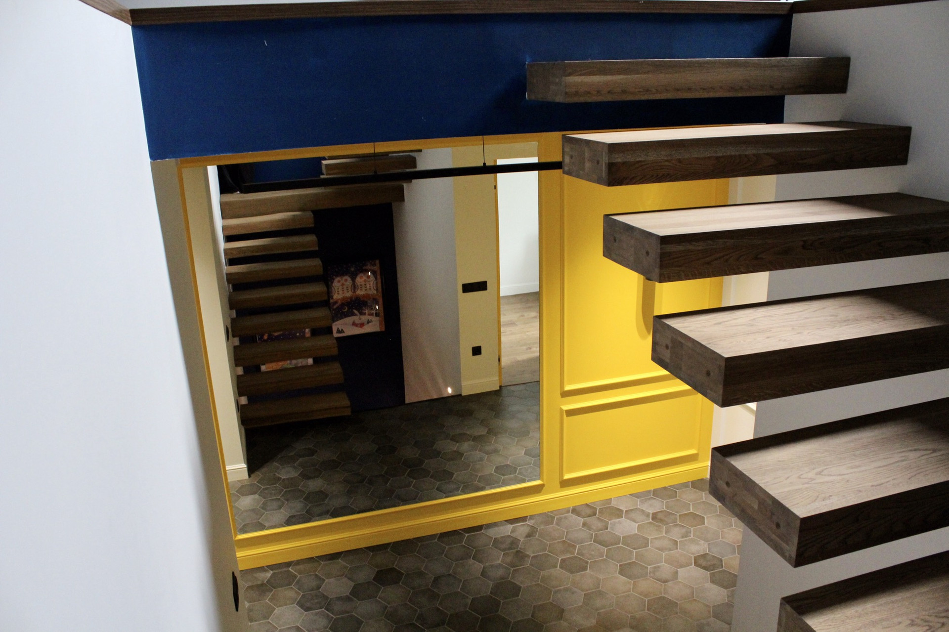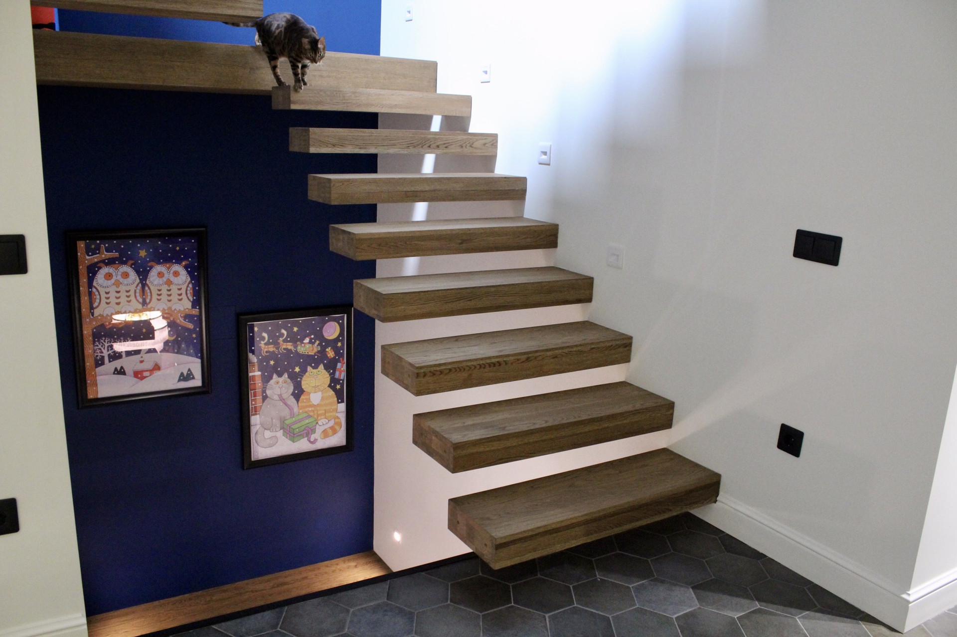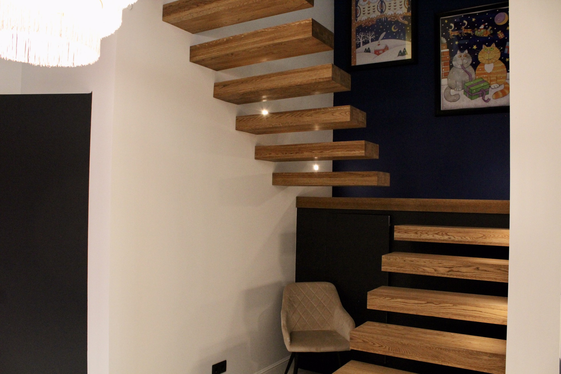 Лестница - металический каркас, обита цельноламельным дубом (экологически чистые деревянные панели).