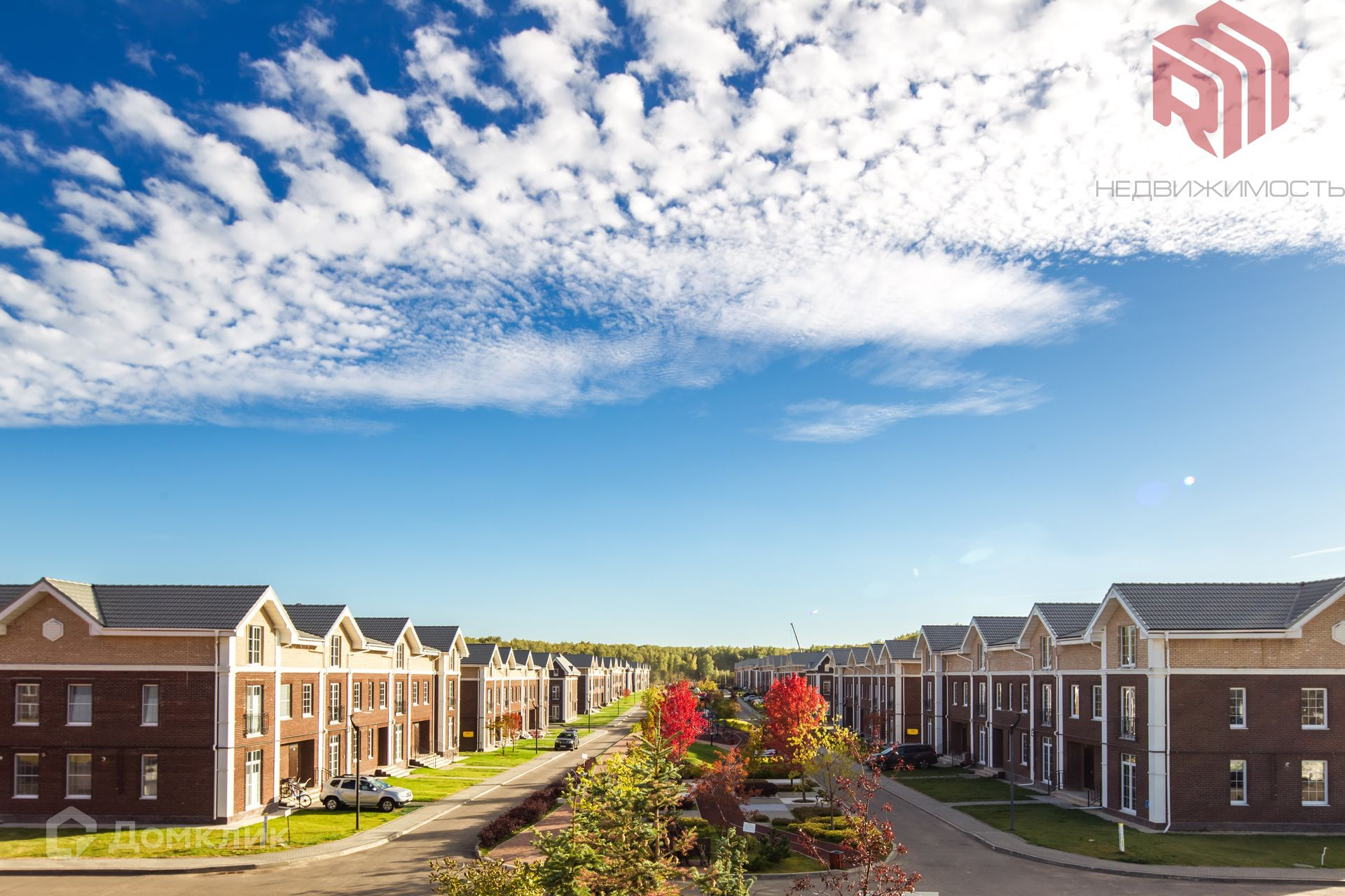 Стоянка нескольких автомобилией перед каждым таунхаусом
