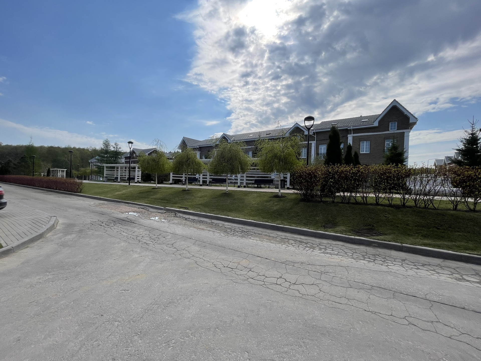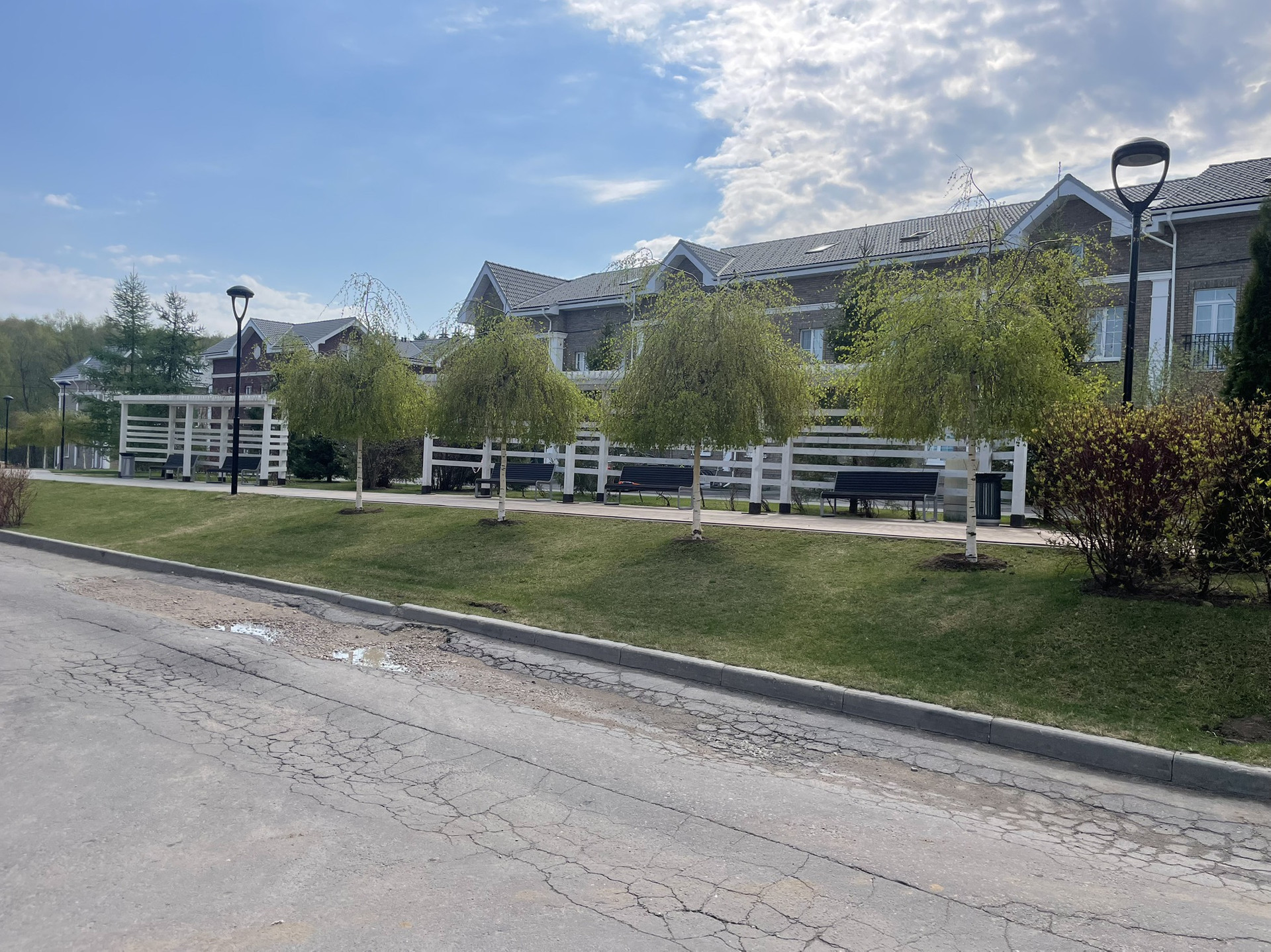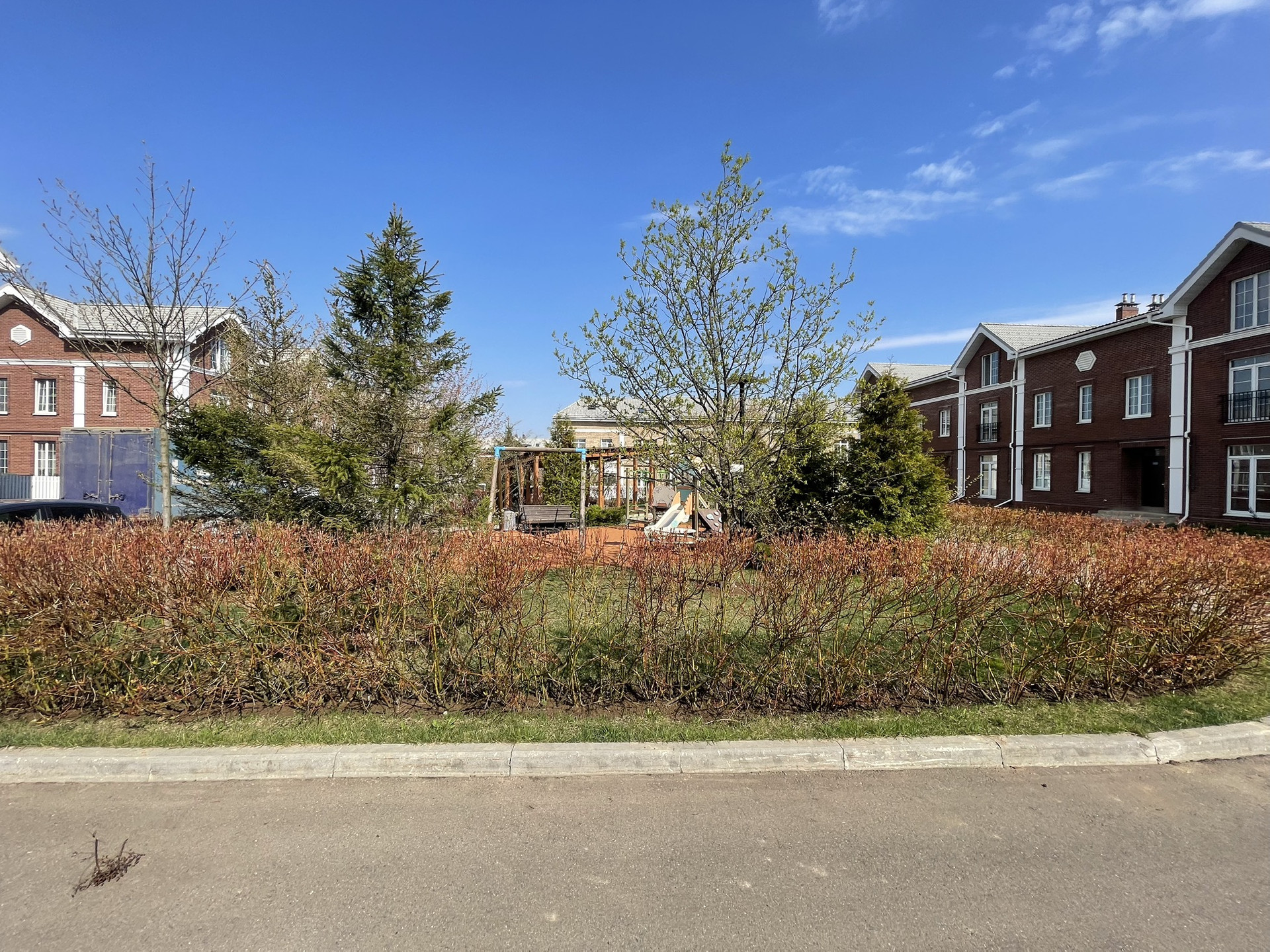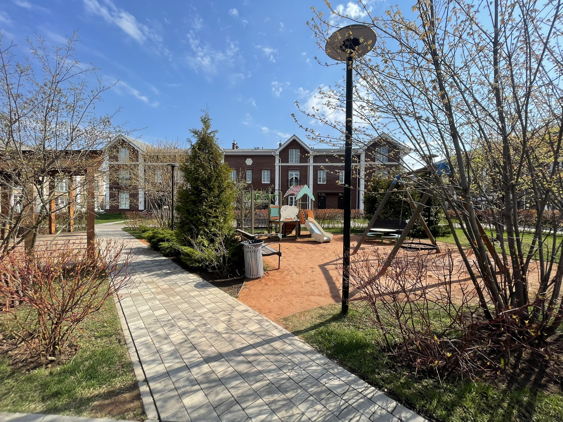 Поселок предполагает кластерную систему расположения домов, где в каждом кластере состоящим из 4 домов, внутри своя зона отдыха и детская площадка. Так же по центральной улице расположен общий сквер длинной в весь поселок.