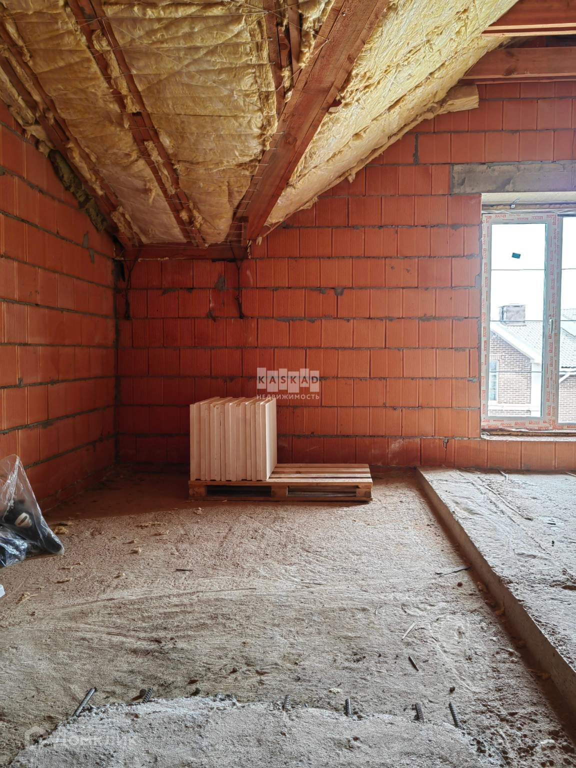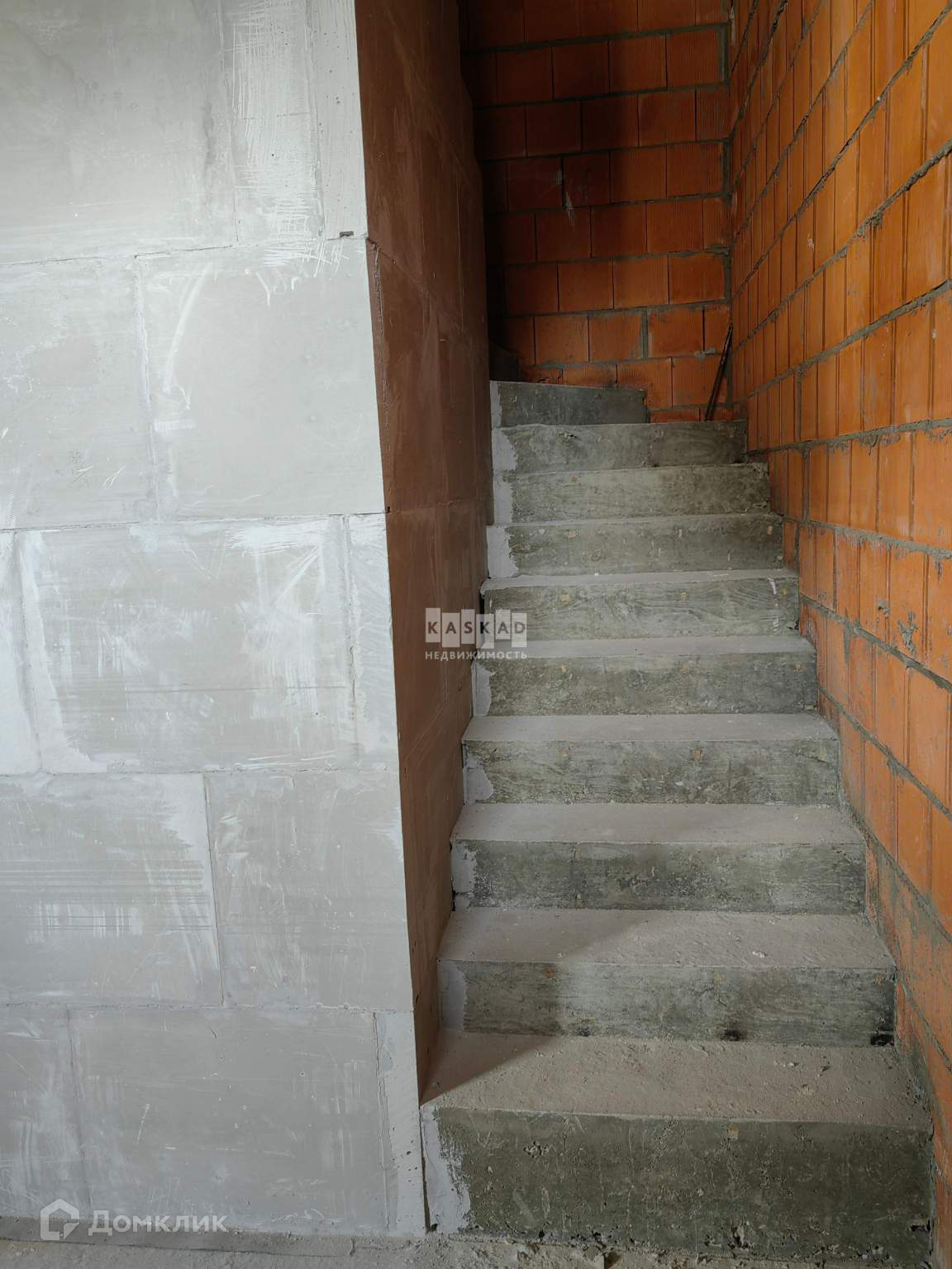 Таунхаус сблокированного типа с большим панорамным окном на третьем этаже. Без отделки, отдельно смонтирована бетонная лестница и внутрикомнатные перегородки.