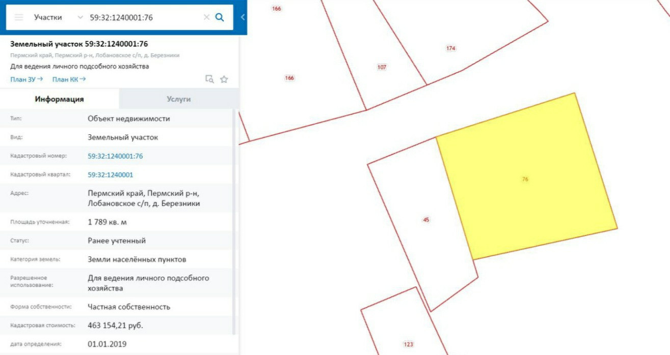 Кадастровый номер 59:32:1240001:76.