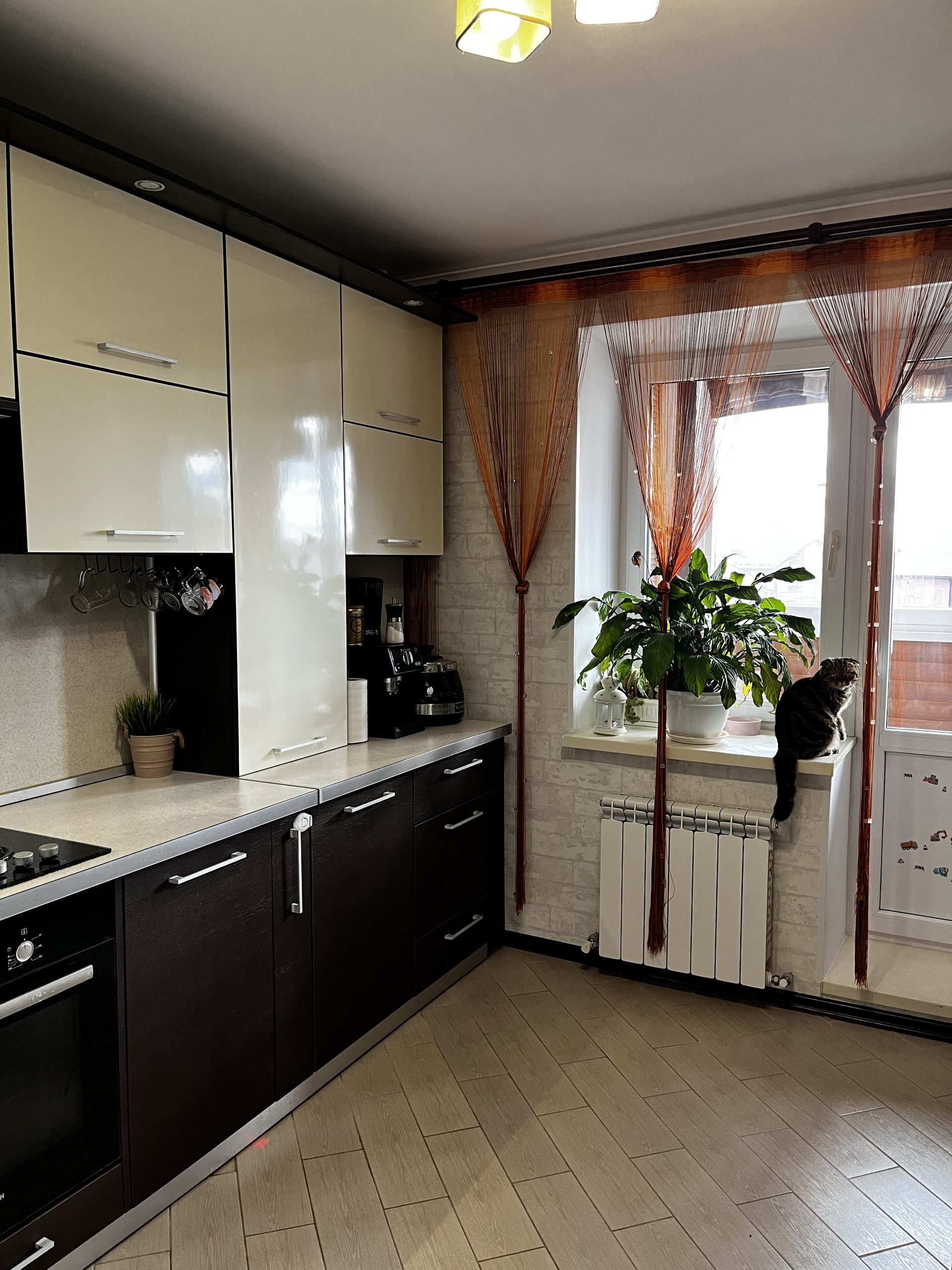 Квартира тёплая (фасад дома утеплён), индивидуальное отопление, котёл BAXI, хороший, качественный ремонт (потолок в комнатах выровнен, на полу ламинат и керамогранит), тёплый пол (кухня, ванная, туалет, прихожая у входа)