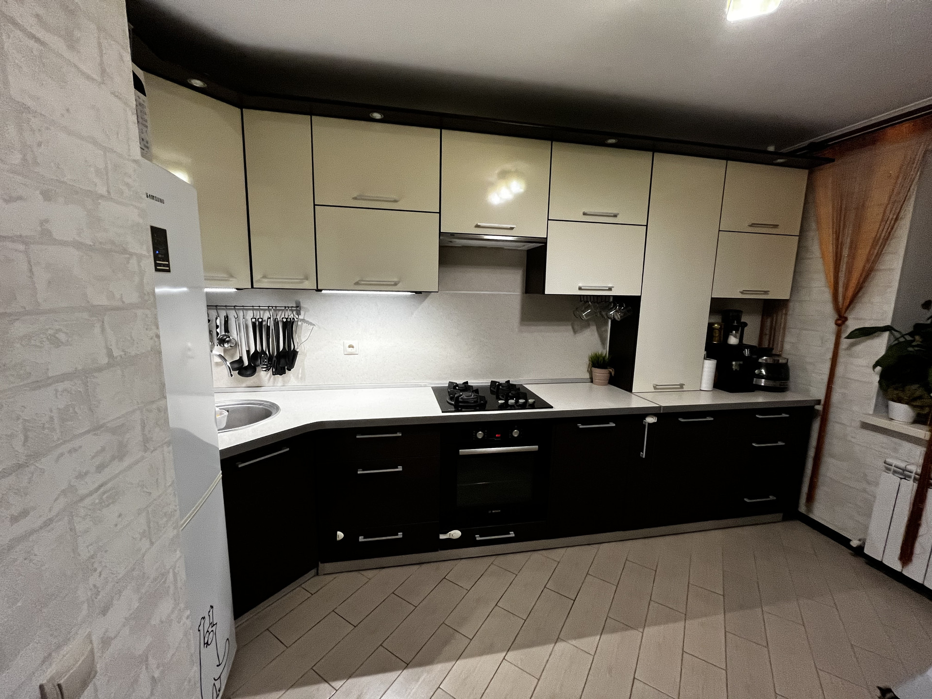 Встроенная кухня с техникой (варочная панель Hansa, духовой шкаф и посудомоечная машина Bosh)