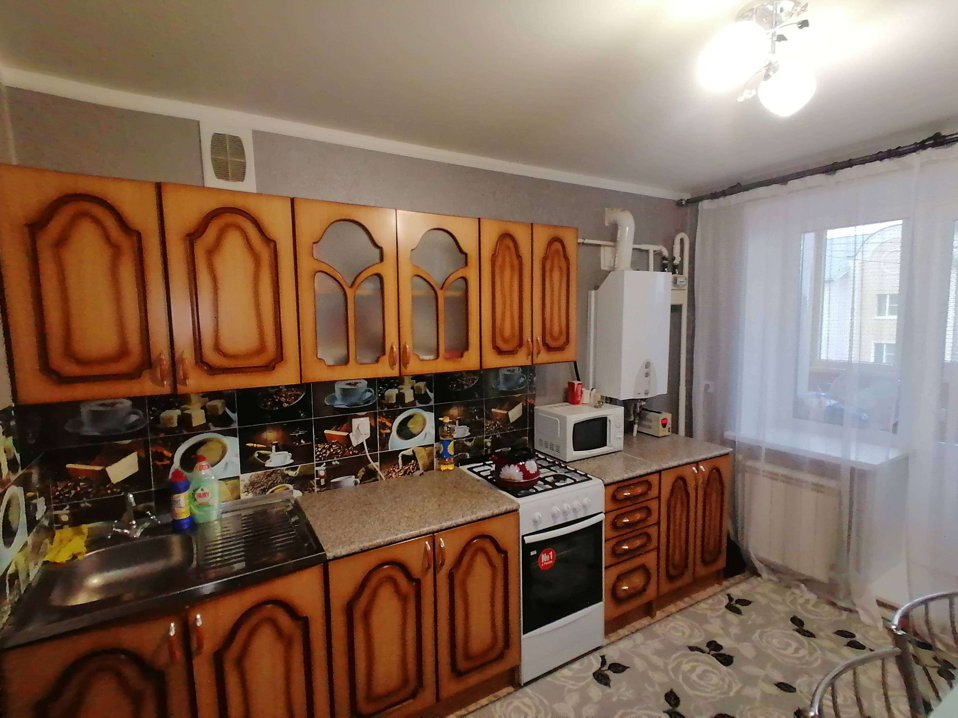 Квартира в спальном районе города с индивидуальным отоплением, сделан отличный ремонт. Пластиковые окна, натяжные потолки, с/у в кафеле.