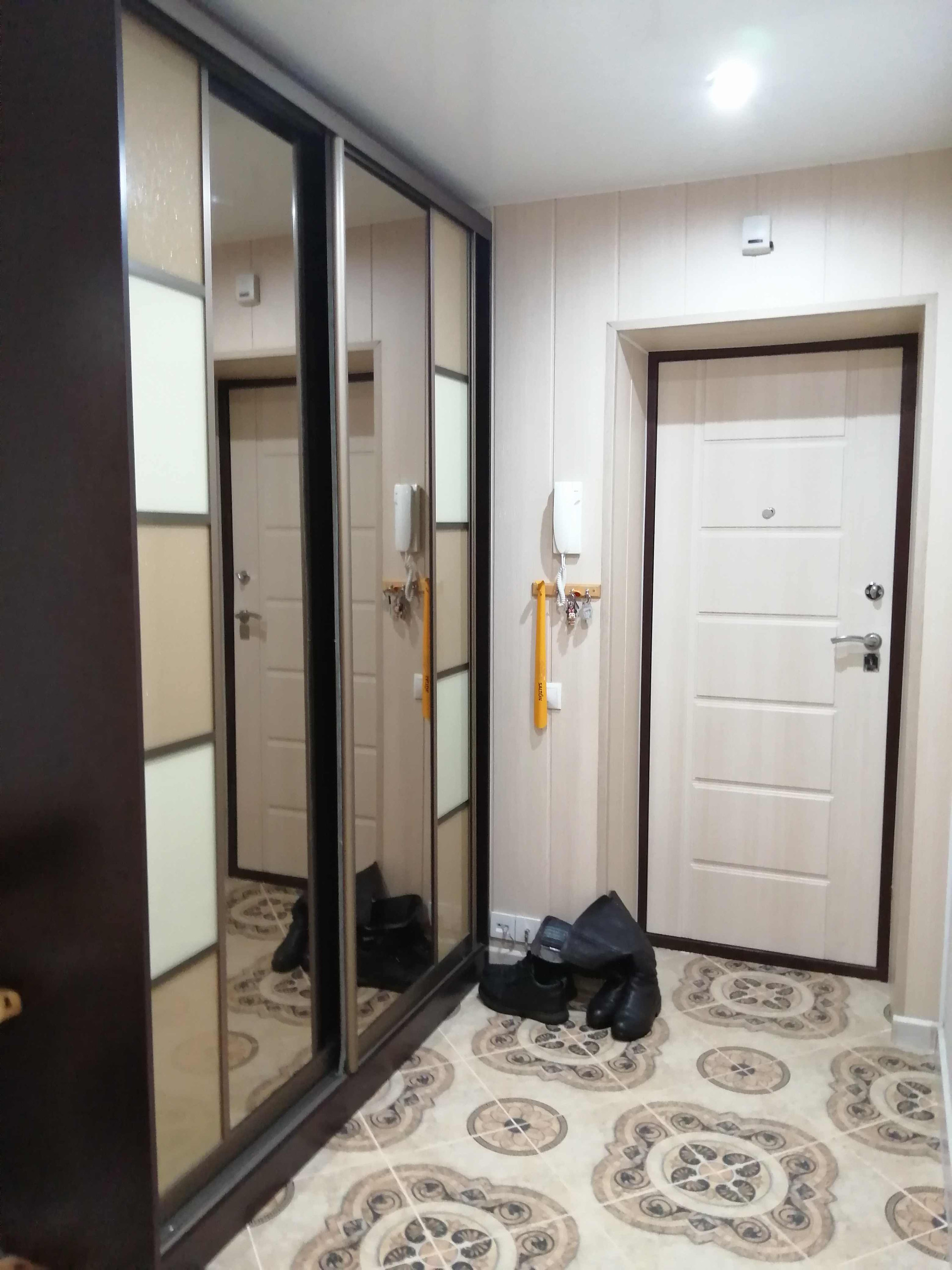 На полу ламинат, прихожая - кафель