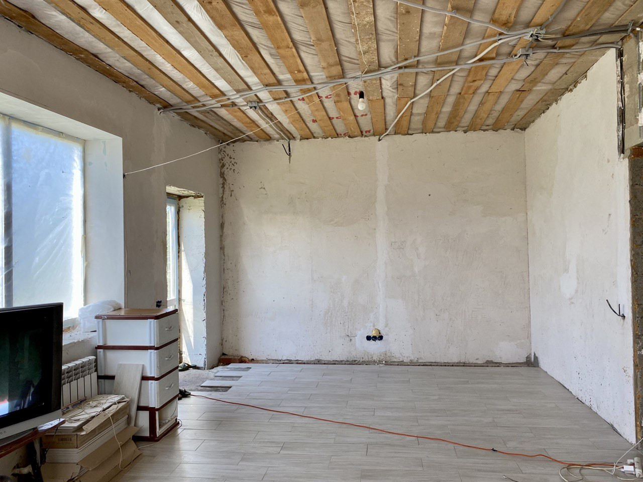 Электричество, газ, канализация заведены в дом. Предчистовая отделка 1-го этажа, высота потолка 2,82 м, на первом этаже теплые полы и радиаторы отопления, в бане также теплые полы. Газовый котел двухконтурный тихий марки Federica Bugatti. На полу 1-го этажа постелена керамогранитная плитка. Окна 1-го этажа выполнены из стеклопакетов с тройным остеклением. Перекрытия выполнены из дерева, обработанного огне-биозащитным средством.