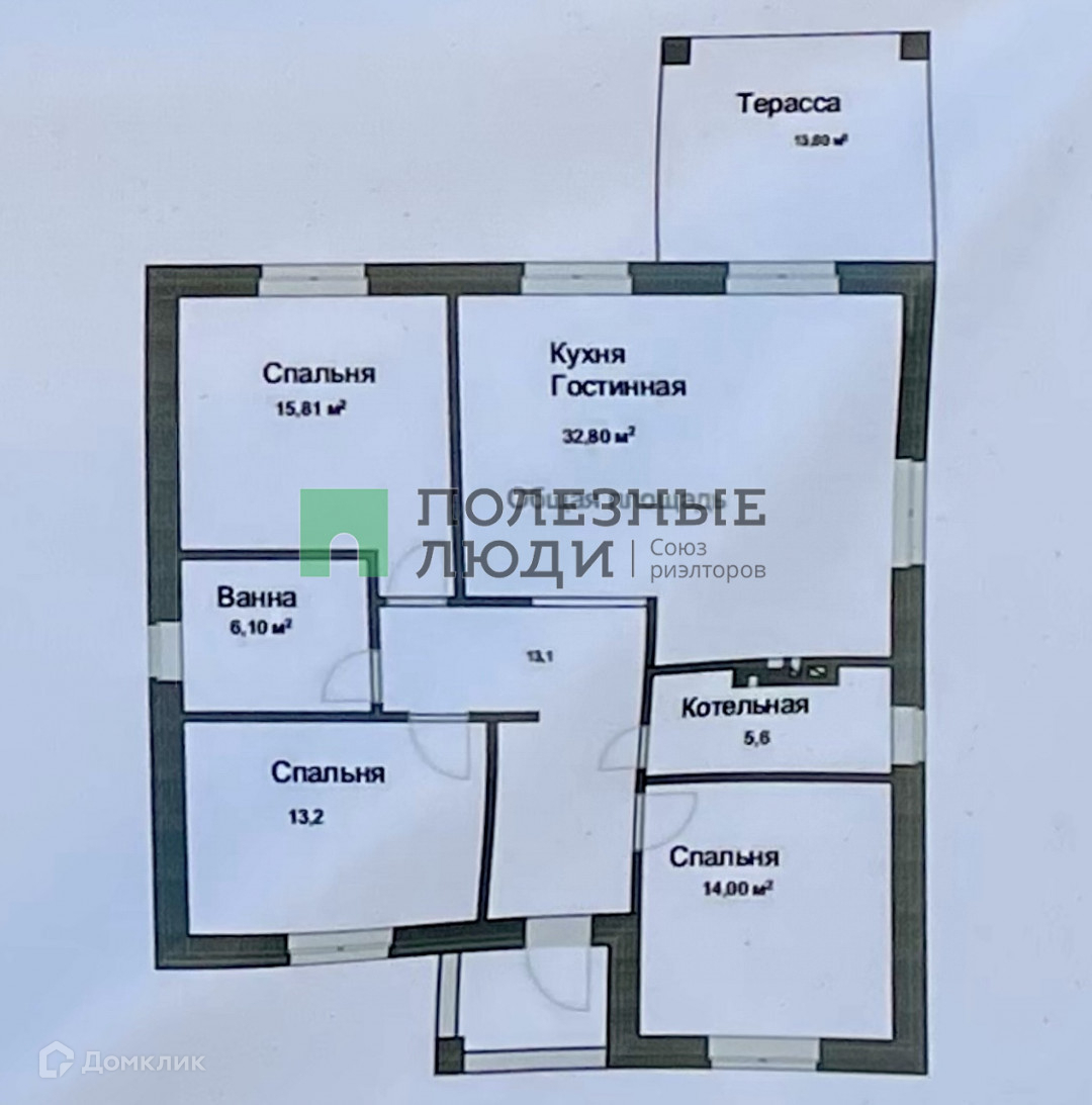 Современная планировка: просторная кухня – гостиная с выходом на террасу, котельная, совмещенный санузел, 3 спальни.