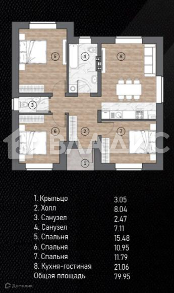 Общая площадь 80 м2
