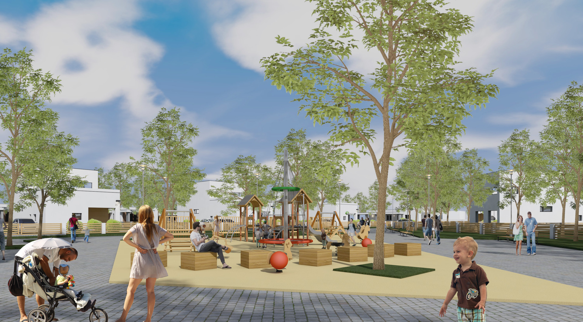 Все дома в поселке в одном стиле с одинаковыми ограждениями. Асфальтированные дороги, тротуары, уличное освещение. Детская площадка и пешеходные зоны. Территория будет обслуживаться Управляющей компанией.