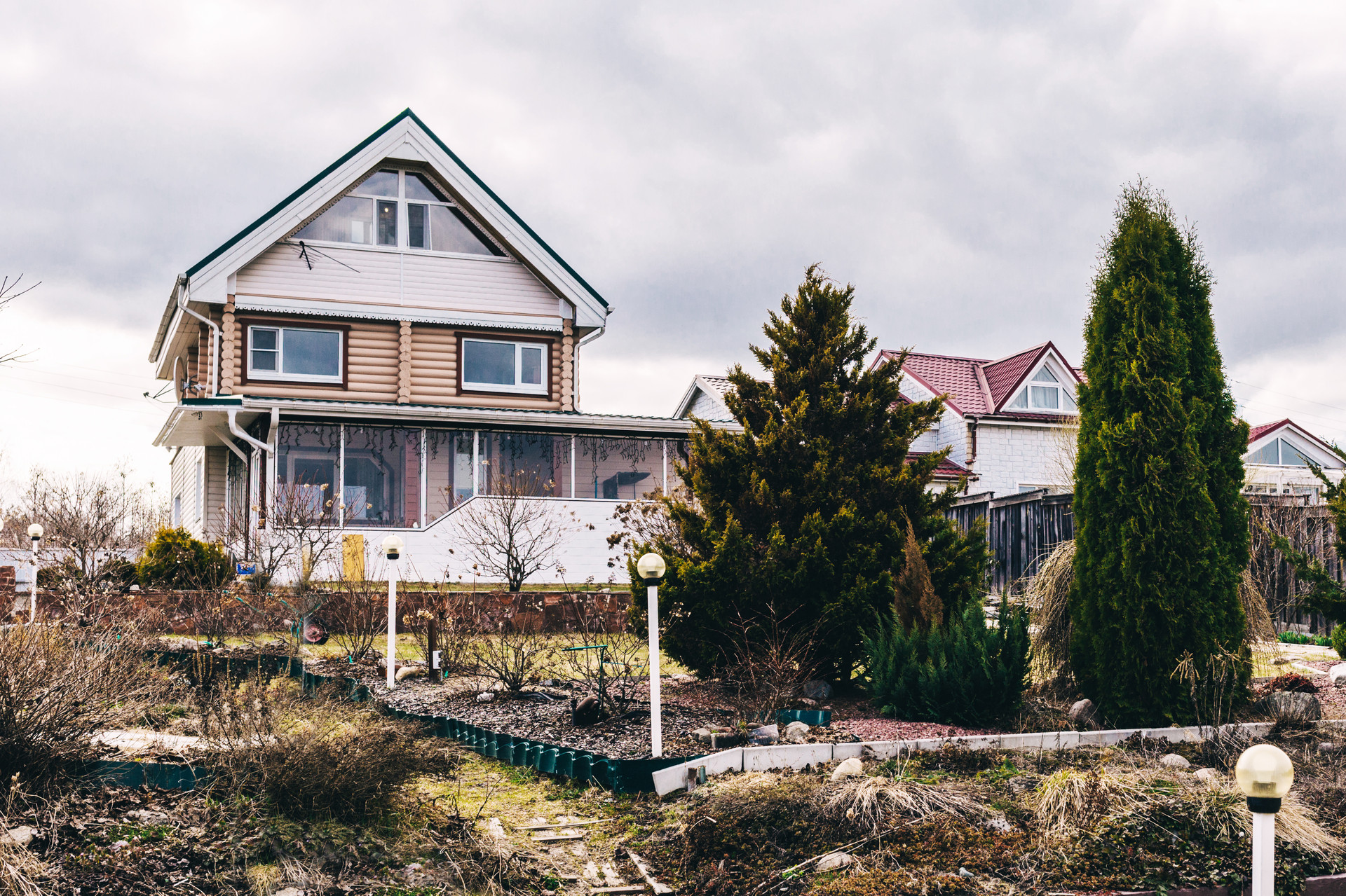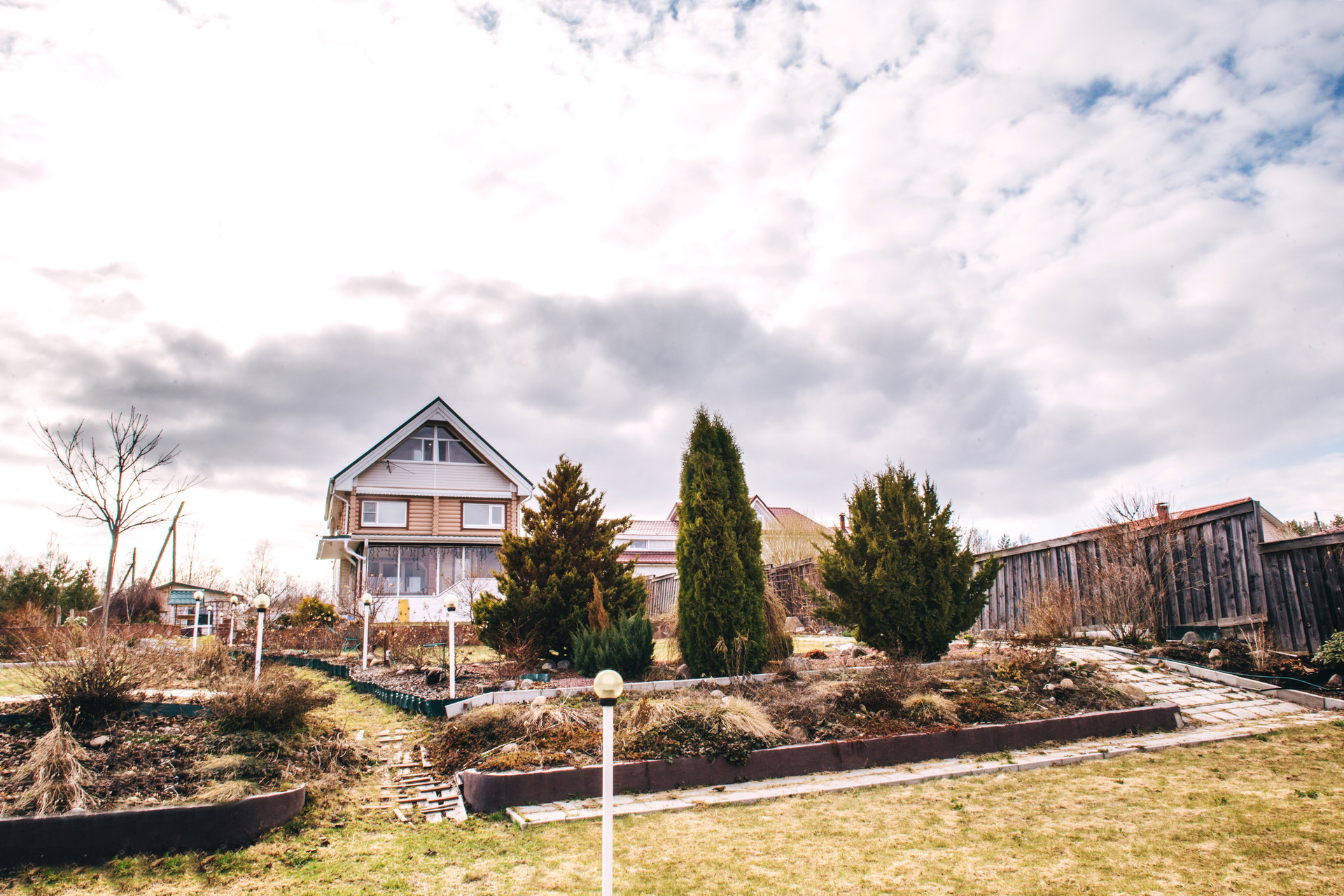 Выполнен ландшафтный дизайн и технические постройки, необходимые для комфортного пребывания людей на участке, — составляющие благоустройства придомовой территории. С помощью декоративных элементов — малых архитектурных форм, цветников, тропинок и других объектов — создается красивое и удобное пространство вокруг дома .