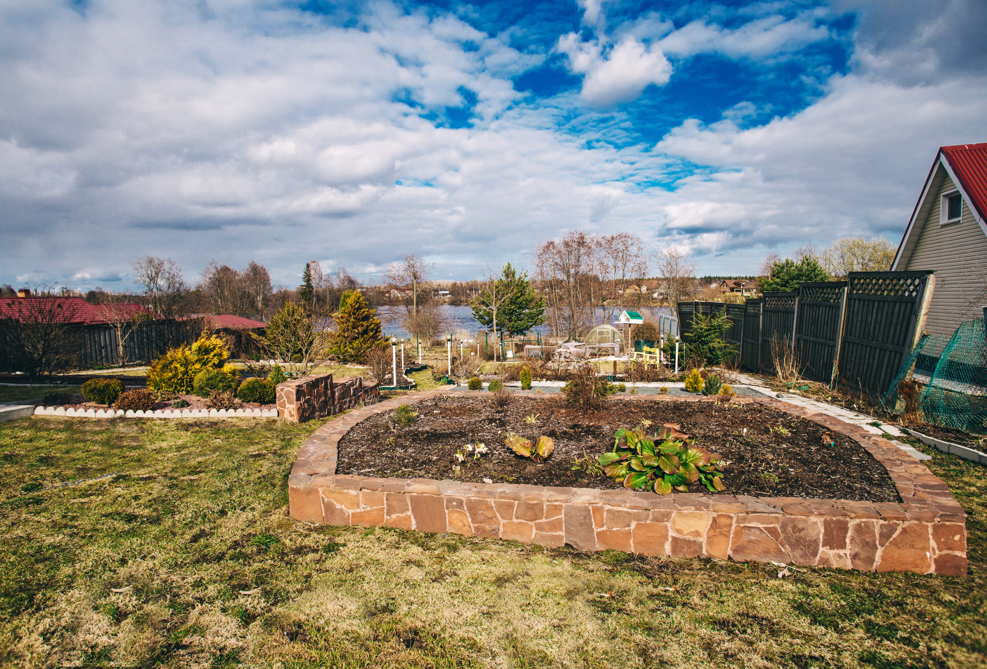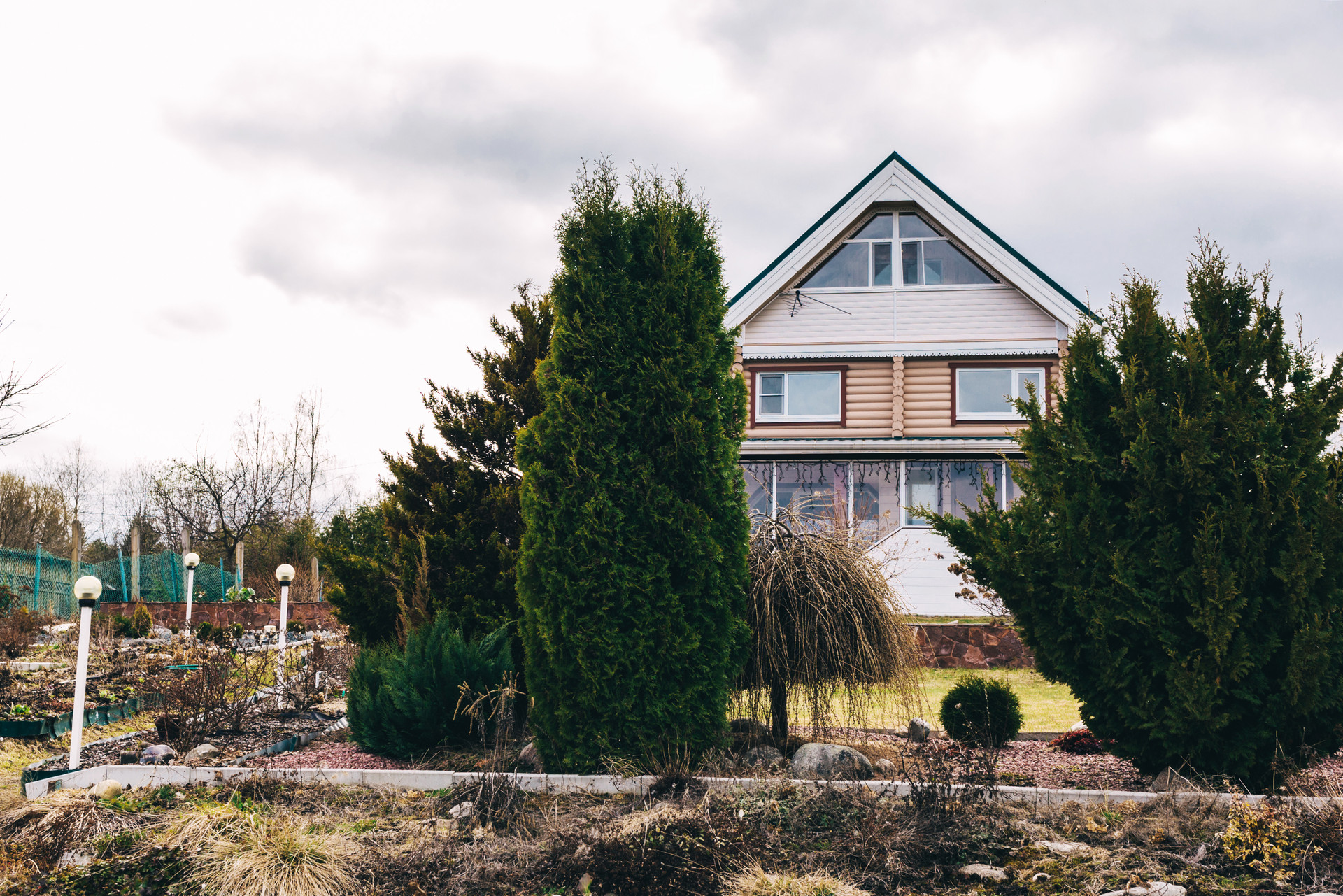 — На участке высажено множество различных кустарников и деревьев.