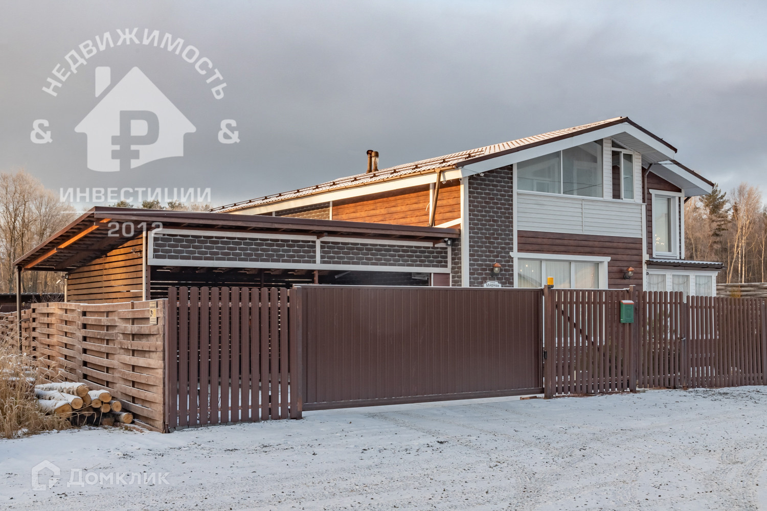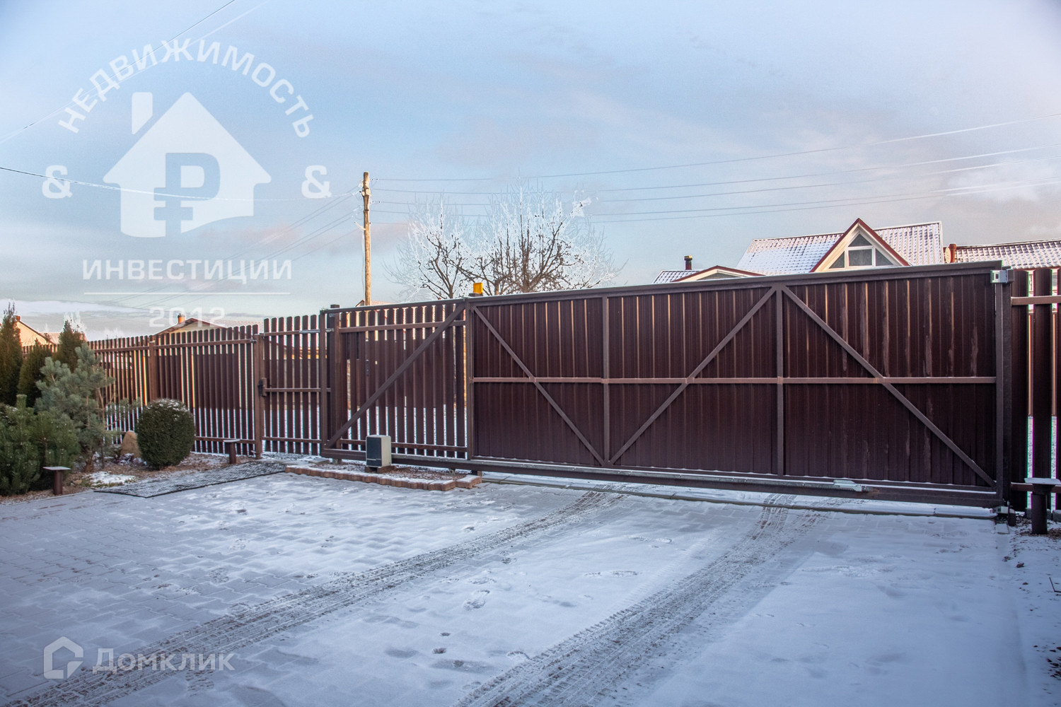 По границе земельного участка установлен забор, автоматические ворота. Крытая автостоянка на две машины, расположена на высокопрочной ж/б плите, которая может использоваться в том числе для строительства капитального объекта.