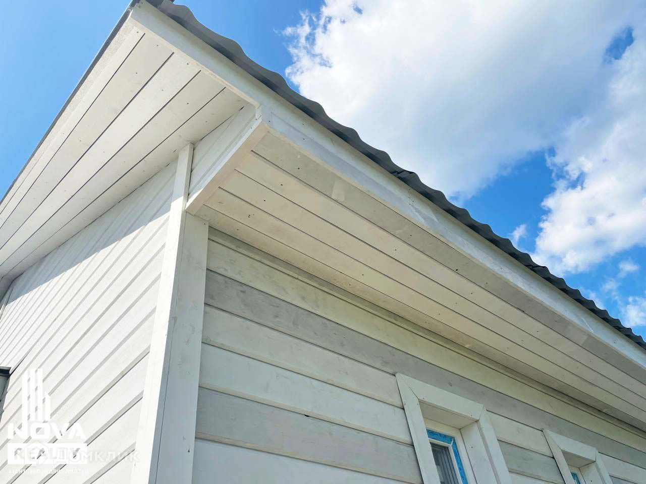 Отделка фасада: имитация бруса, натуральная доска хвойных пород, окрашенная финской краской.