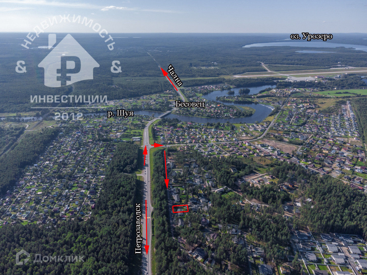 Дом находится в 11 км от города Петрозаводска, рядом протекает река Шуя, в шаговой доступности магазин Магнит, остановка общественного транспорта, в поселке есть детская площадка, баскетбольная площадка, футбольное поле, до близлежащего гипермаркета Плаза 10 минут на автомобиле.