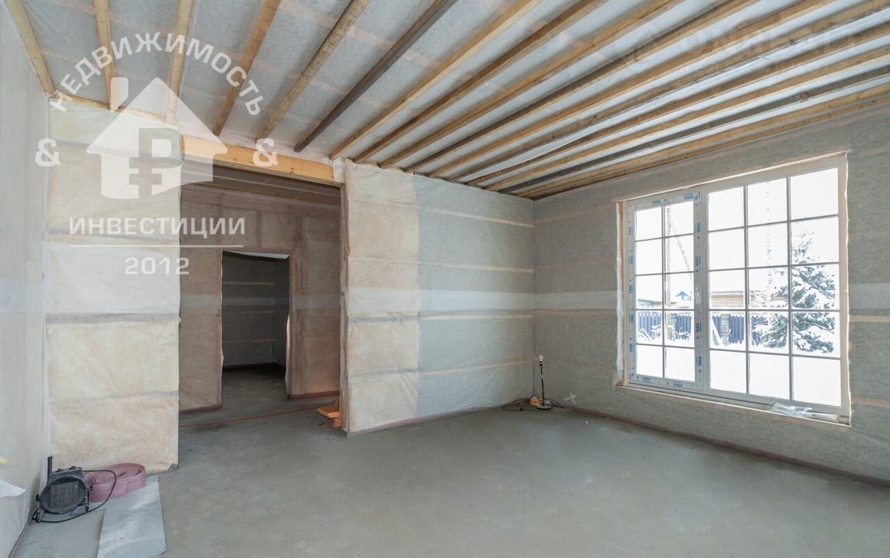 Требуется внутренняя отделка. В доме три раздельные комнаты и просторная кухня-гостиная с панорамными окнами. В доме два санузла, отдельное помещение для котельной.