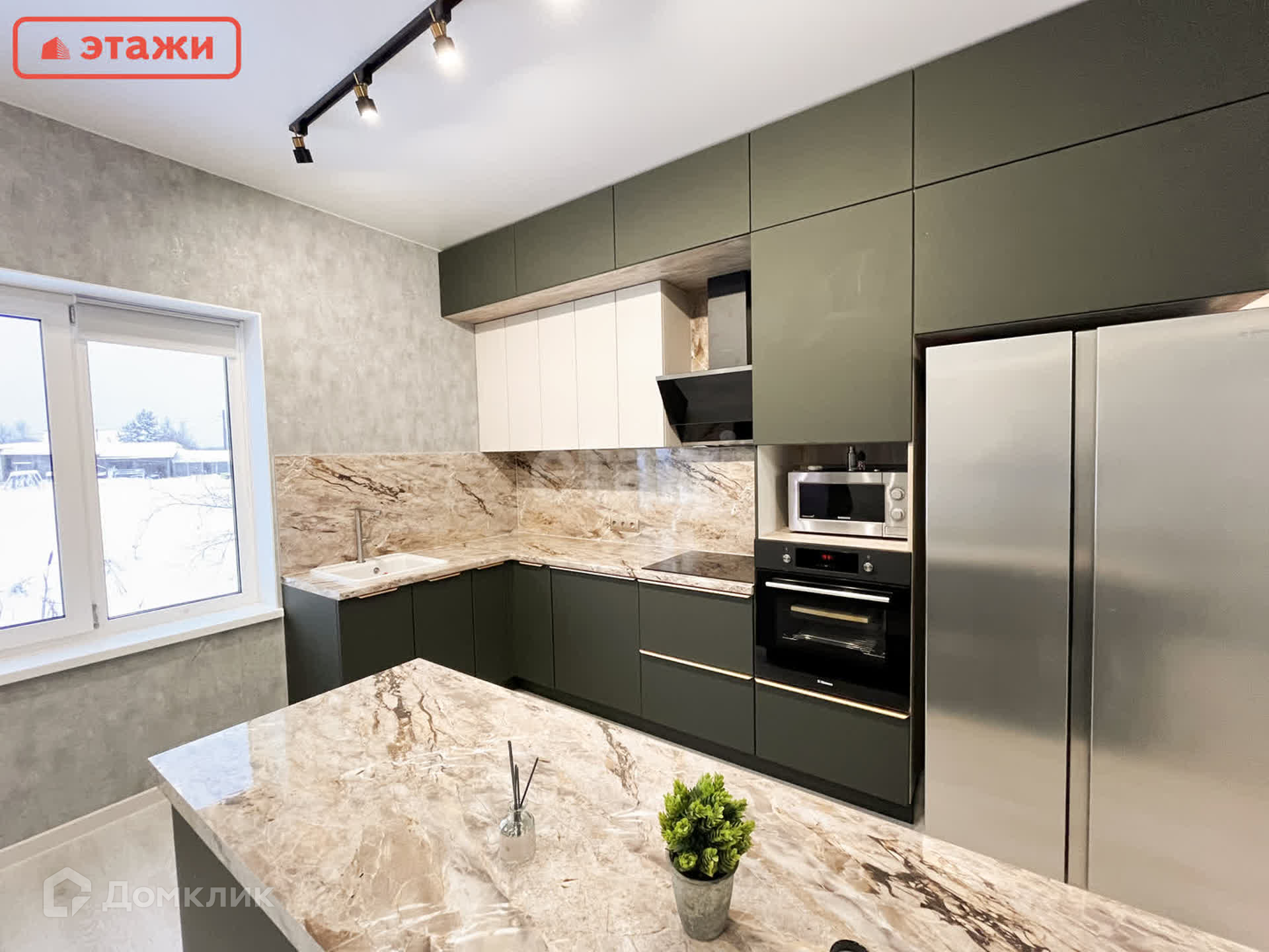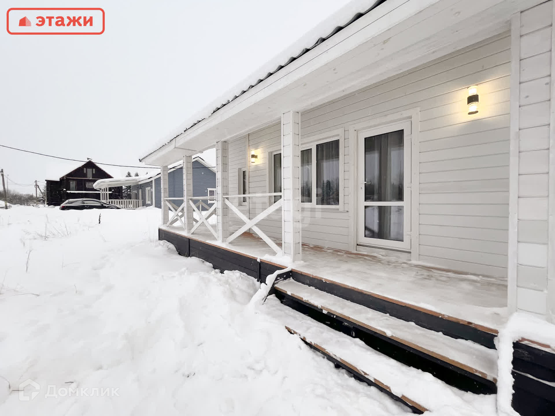 Фасад облицован и оборудован теплой подсветкой, что придает дополнительный шарм, а прилегающая терраса станет идеальным местом для проведения летних вечером или семейных праздников.