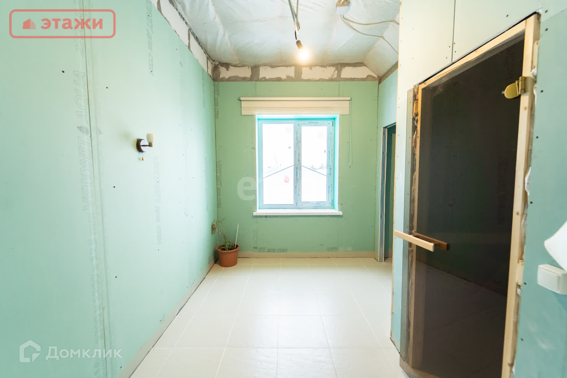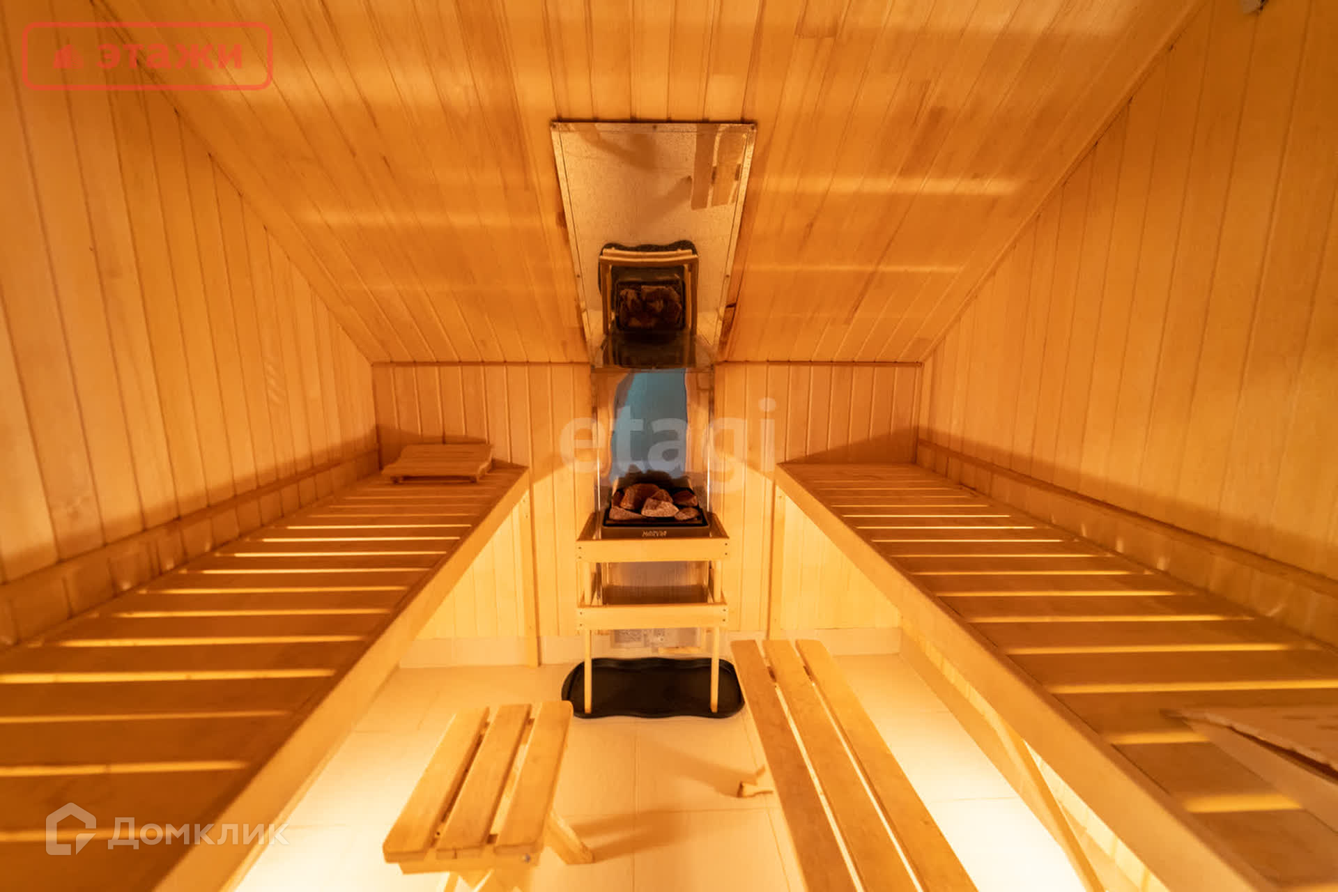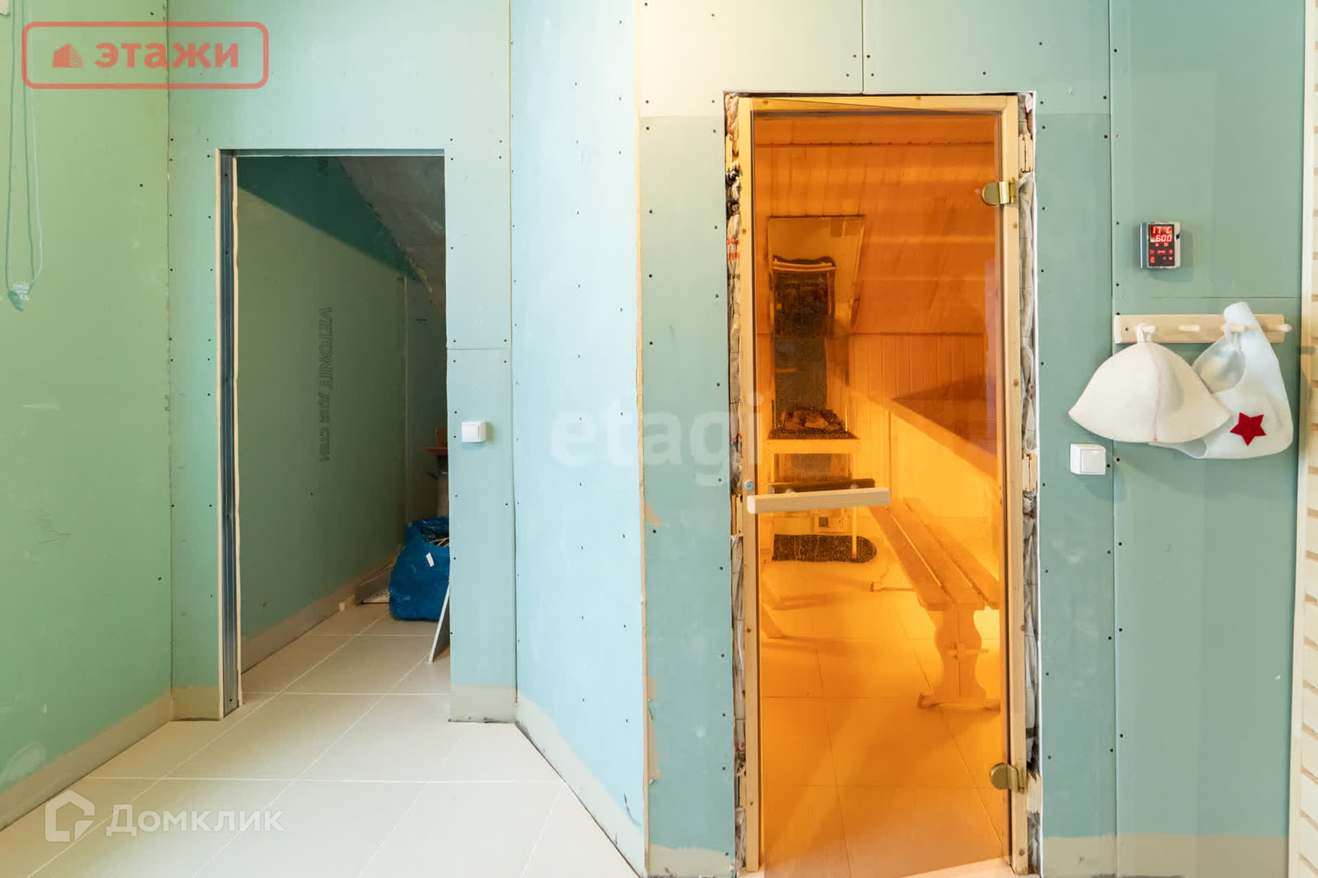 •На втором этаже расположилось большое просторное помещение, при желании можно сделать три уютных комнаты. Выход на балкон - 8 кв.м. Санузел с оборудованной финской сауной Harvia. Сауна с выносным пультом управления. Оборудовано место под ванну и унитаз. Есть подводы воды и канализации.