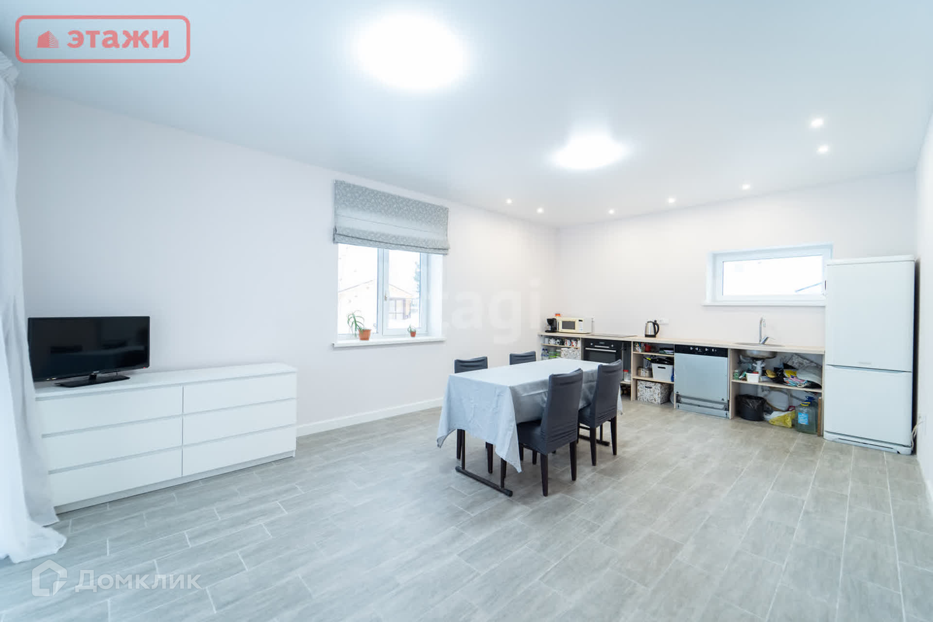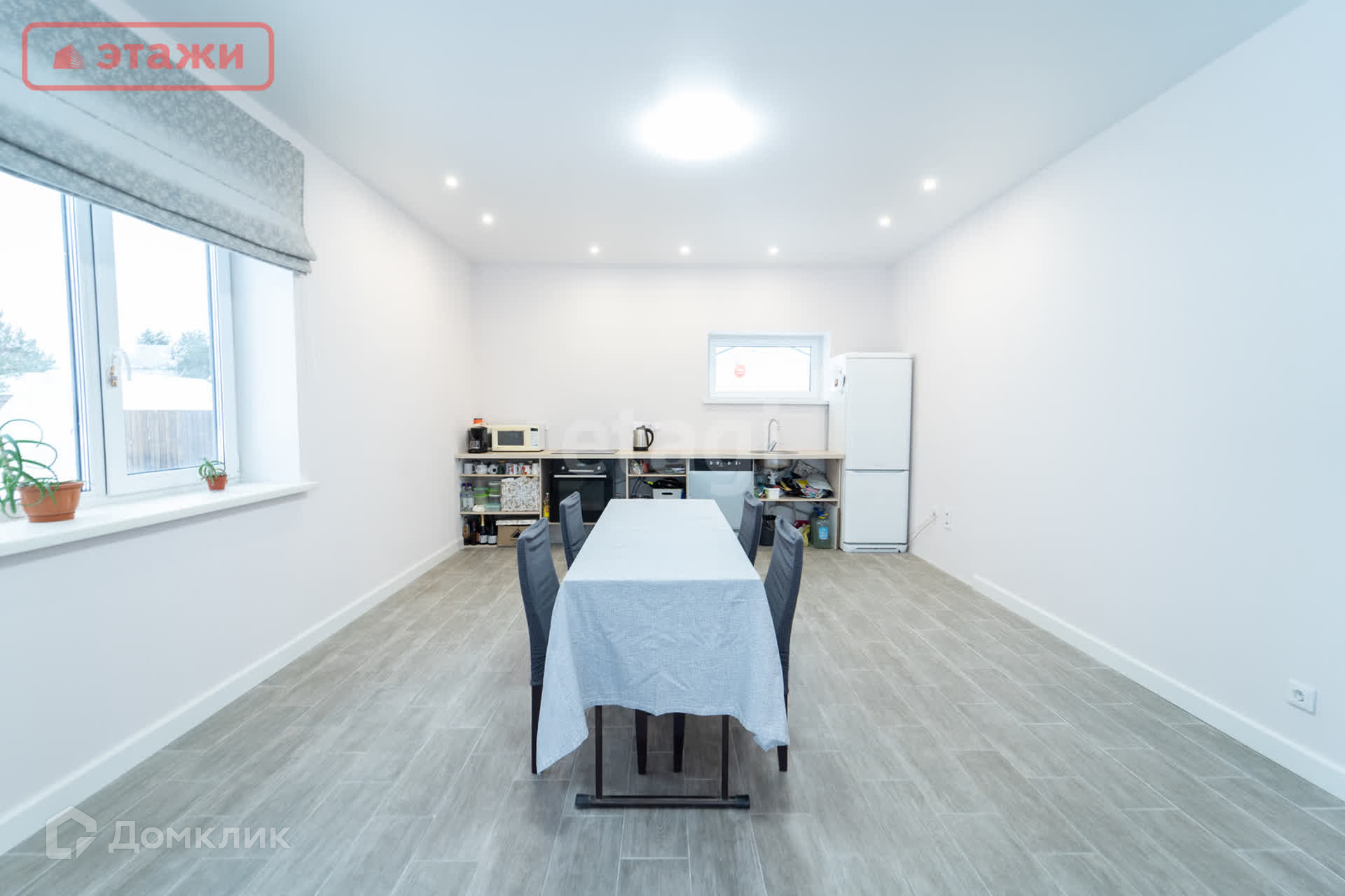 •На первом этаже находятся: просторная кухня - столовая и гостинная, с выходом на терассу. Панорамные окна. Техническое помещение(кдадовка), совмещенный санузел с душевой кабиной.