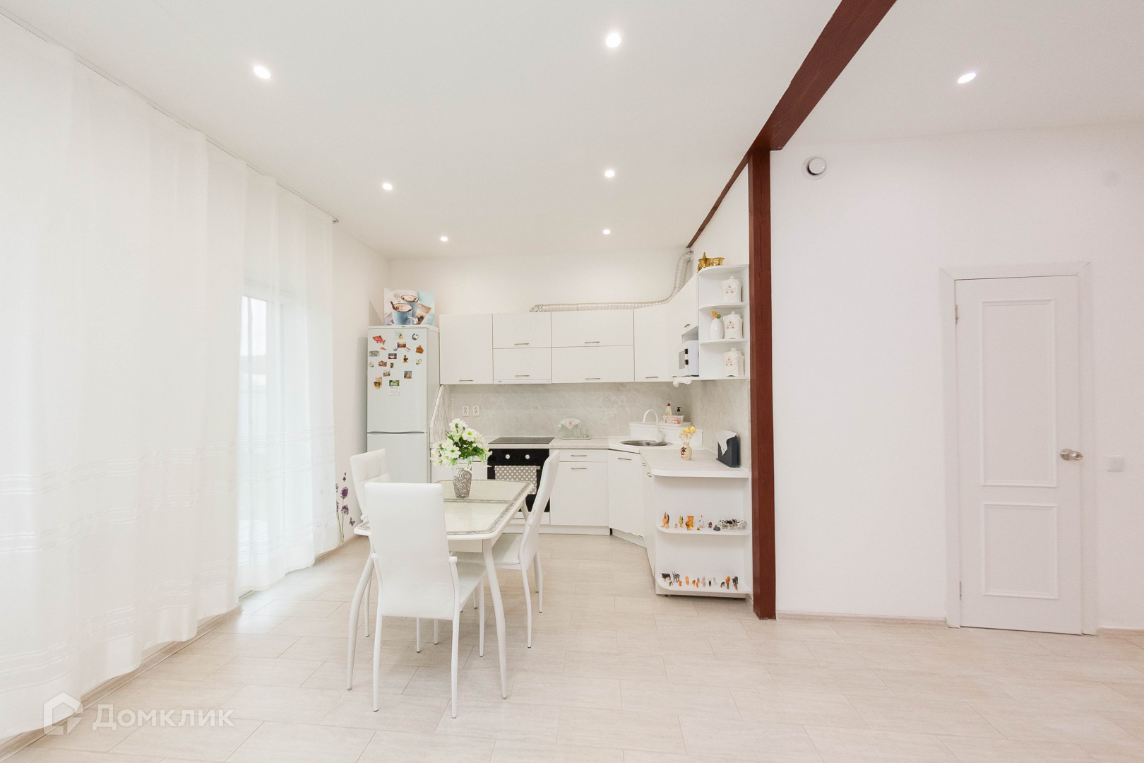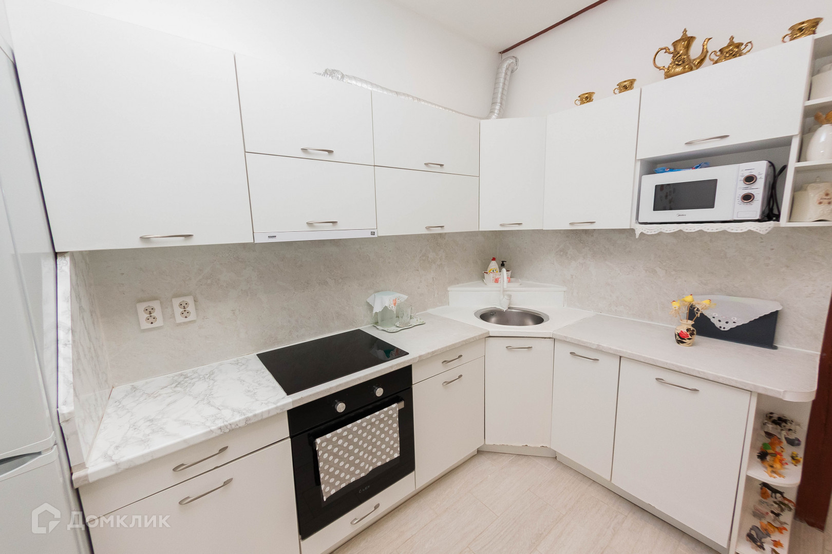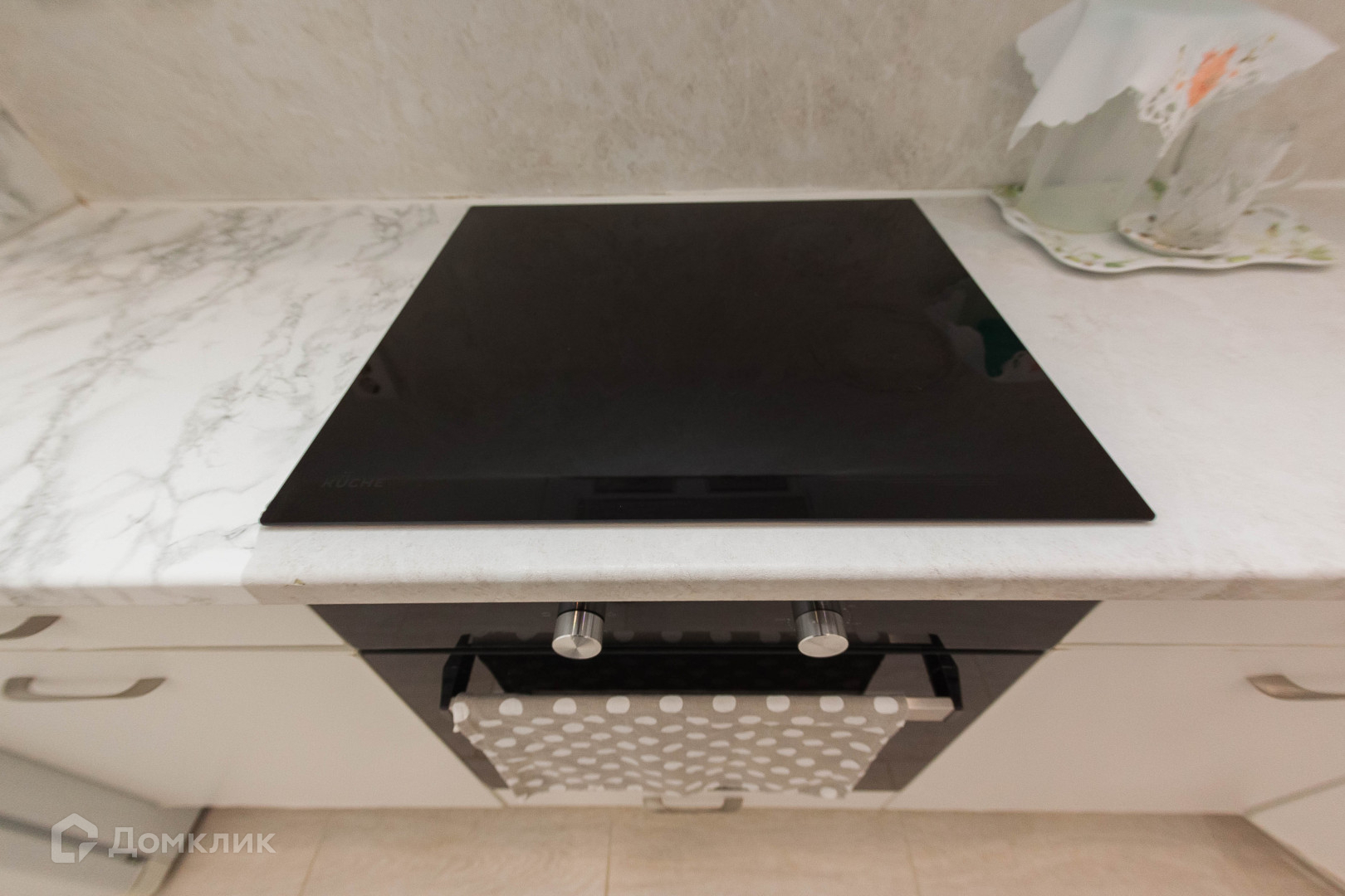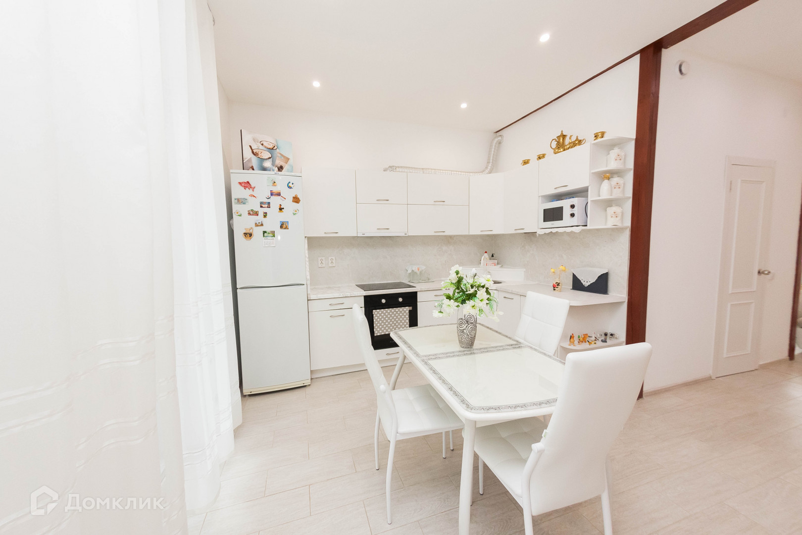 Остаётся весь кухонный гарнитур сделанный по индивидуальному заказу, вся бытовая техника : холодильник, встроенная посудомоечная машина и духовка и варочная панель.