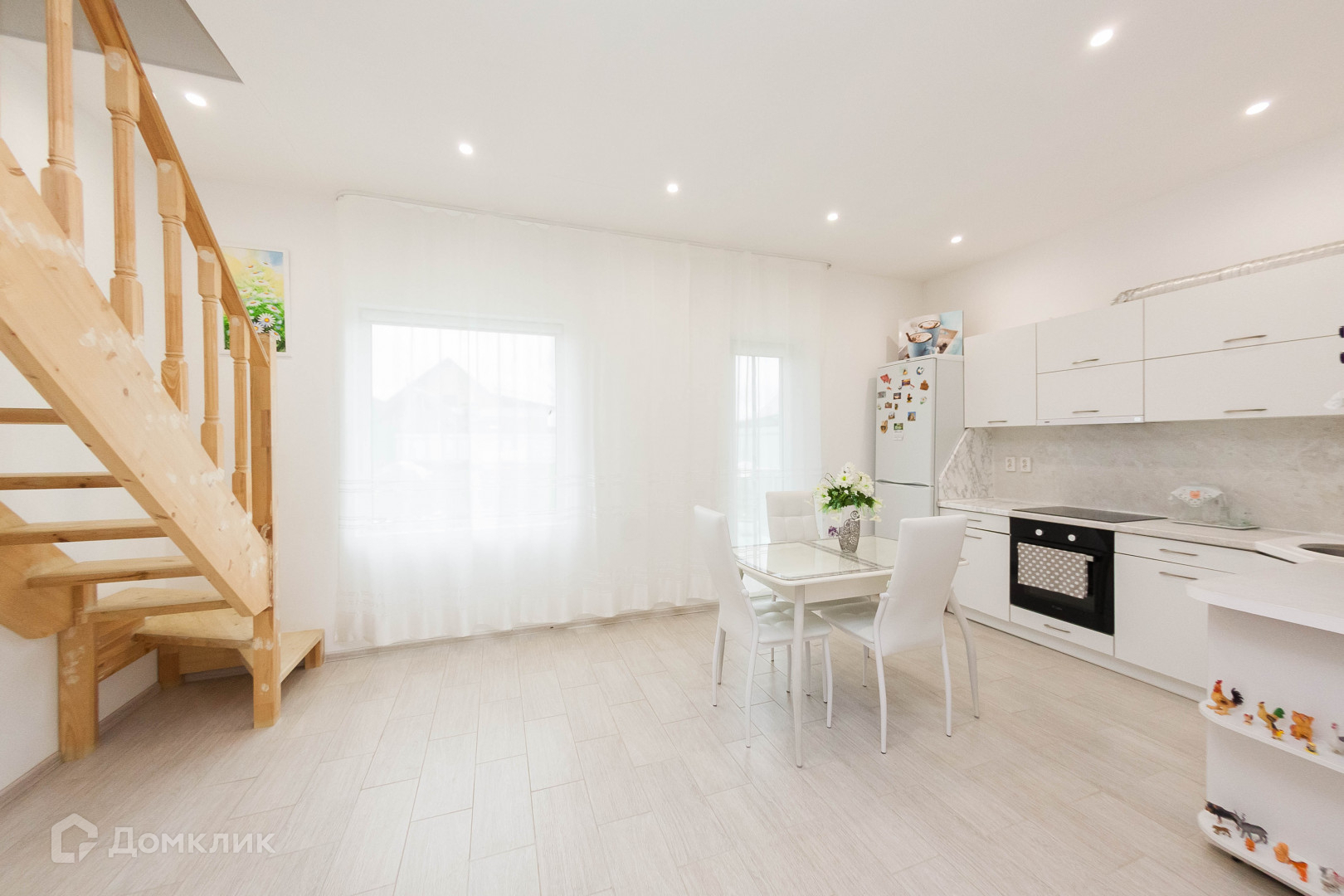 Прекрасная светлая кухня для большой семьи, с видом во двор.
