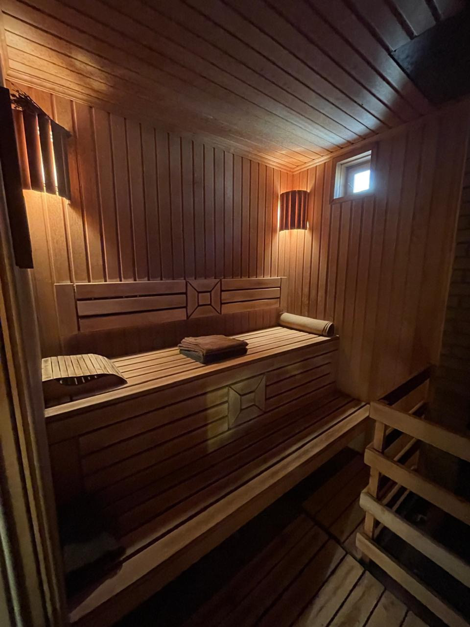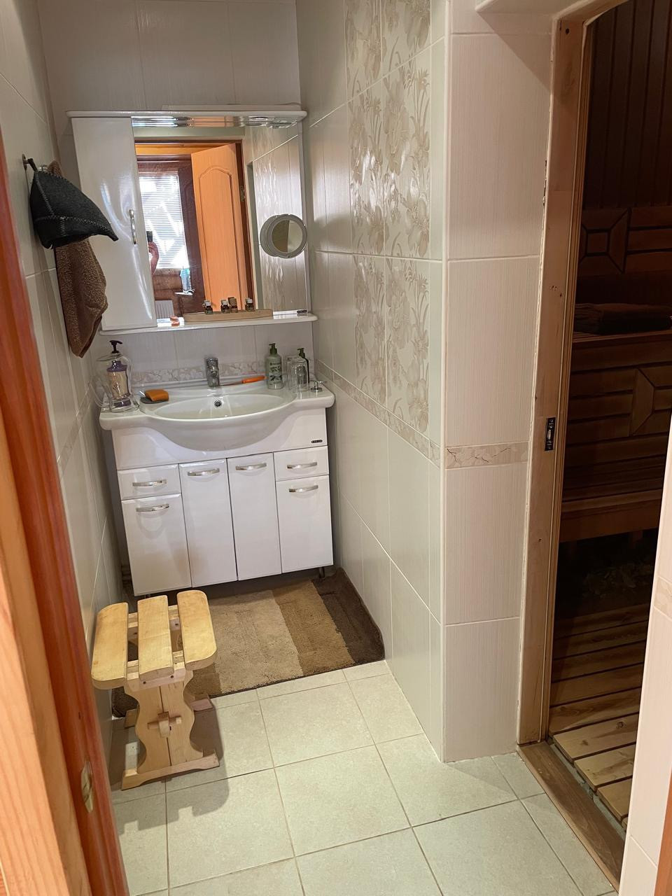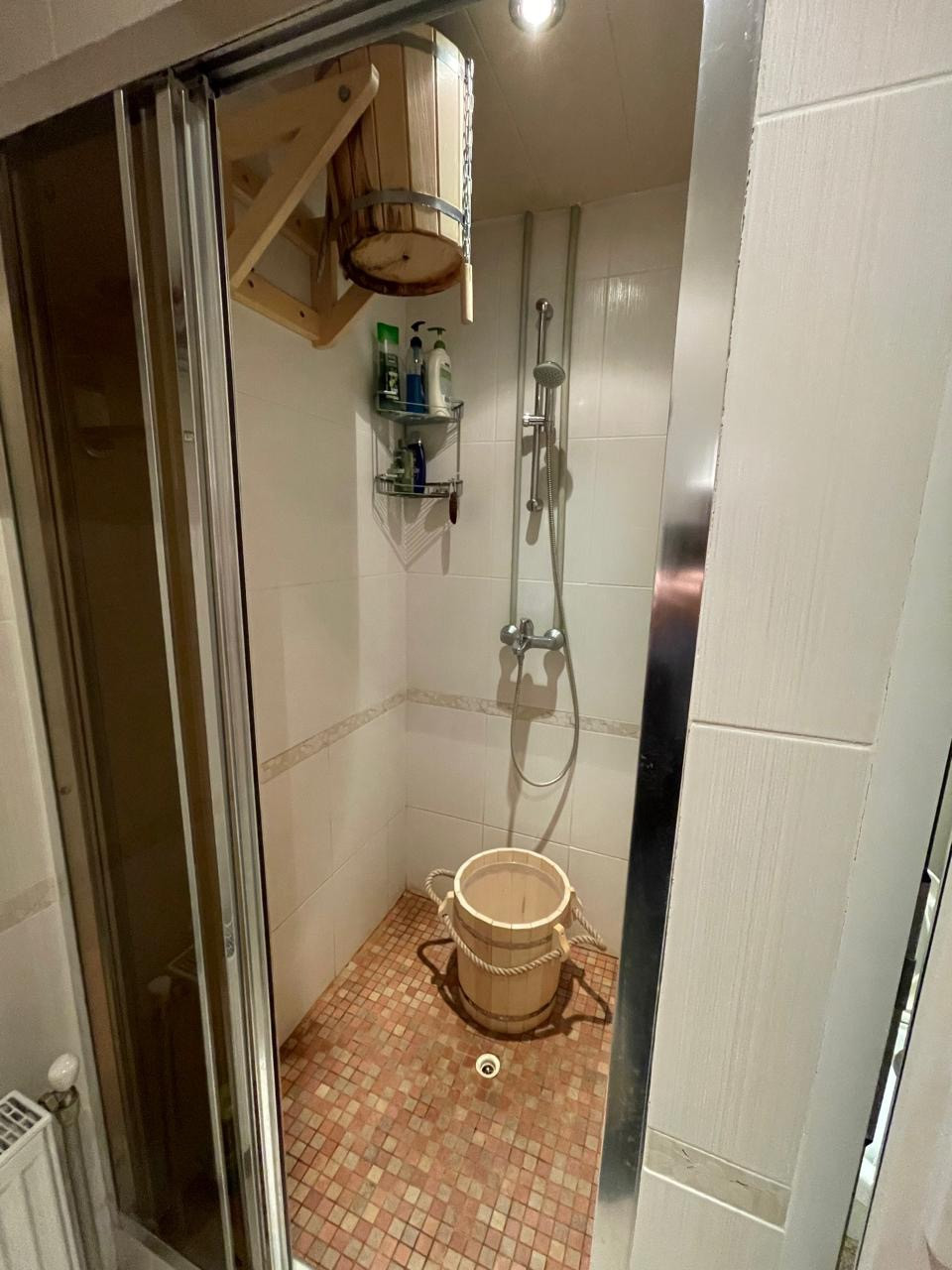 Двухэтажная баня: 1-й этаж -душ с настенным обливным ведром; санузел; вместительная сауна для компании и комната отдыха где вы сможете выпить вкусного чая.