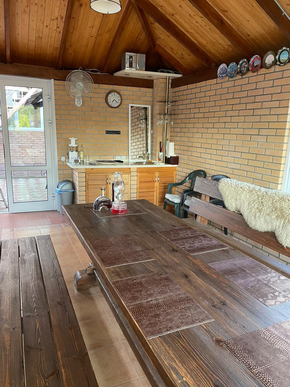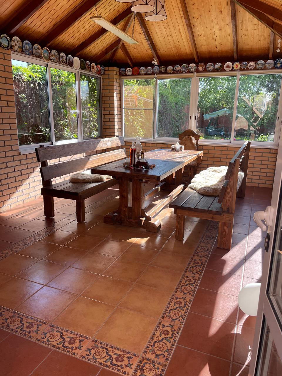 Беседка с кухней: отдельно стоящее отапливаемое здание со своей кухней и эко зоной отдыха, на полу выложена плитка, проведена вода, предусмотрено место для телевизора. Вы можете попеть караоке и поесть вкусный шашлык только что принесенный из мангальной зоны, вашей дружной компанией.
