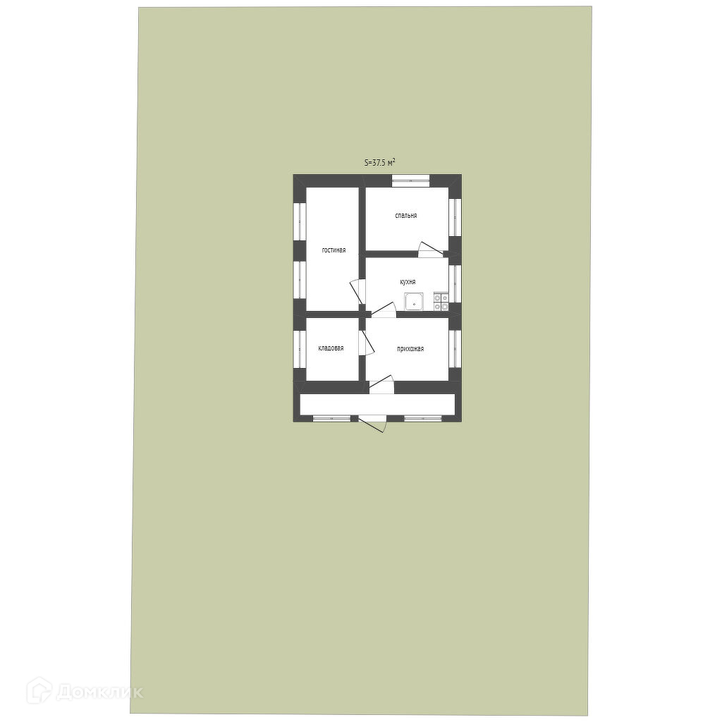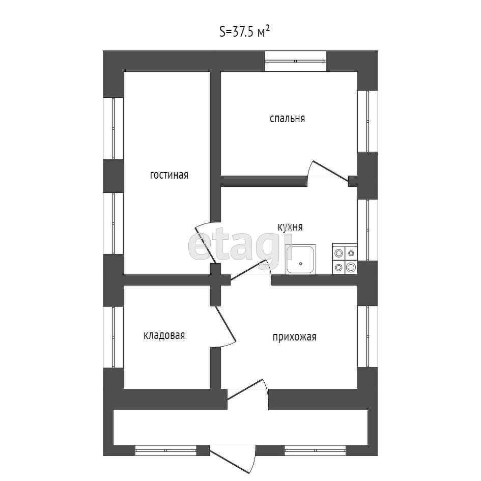 Общая площадь 37.5 м2