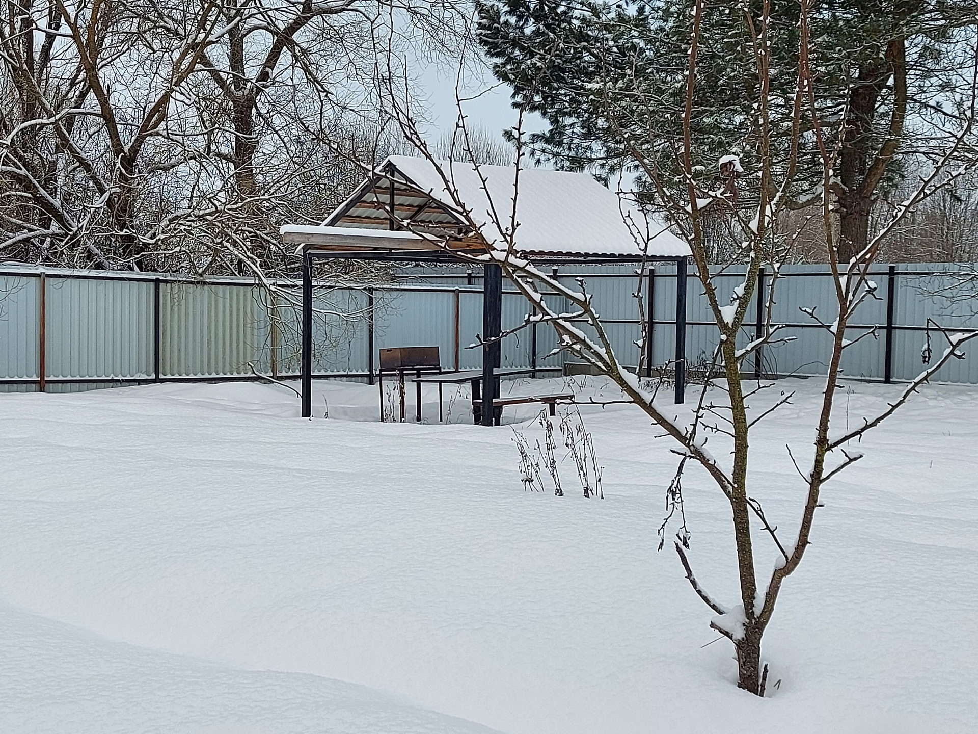 На земельном участке 39 соток посажены деревья и кустарники. Есть зона барбекю.