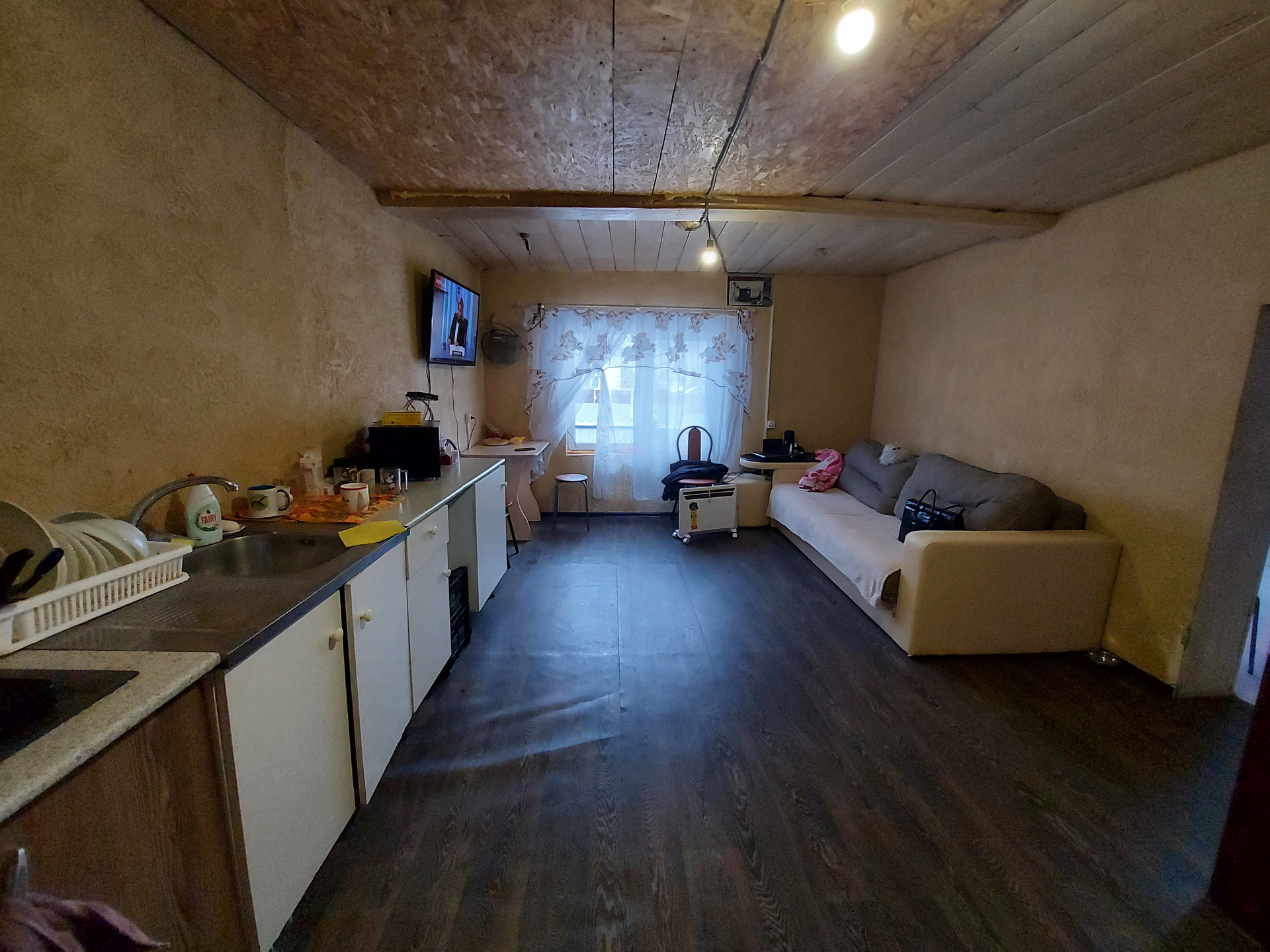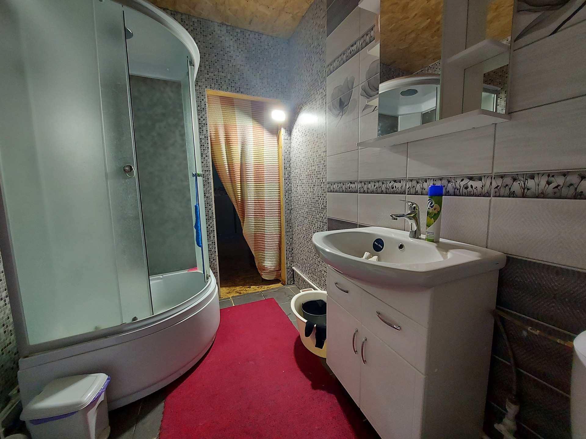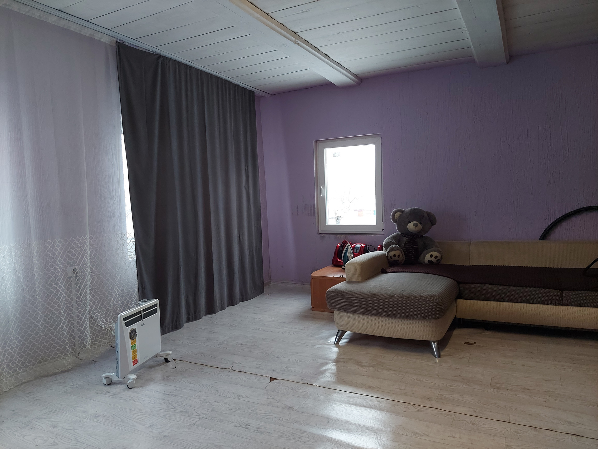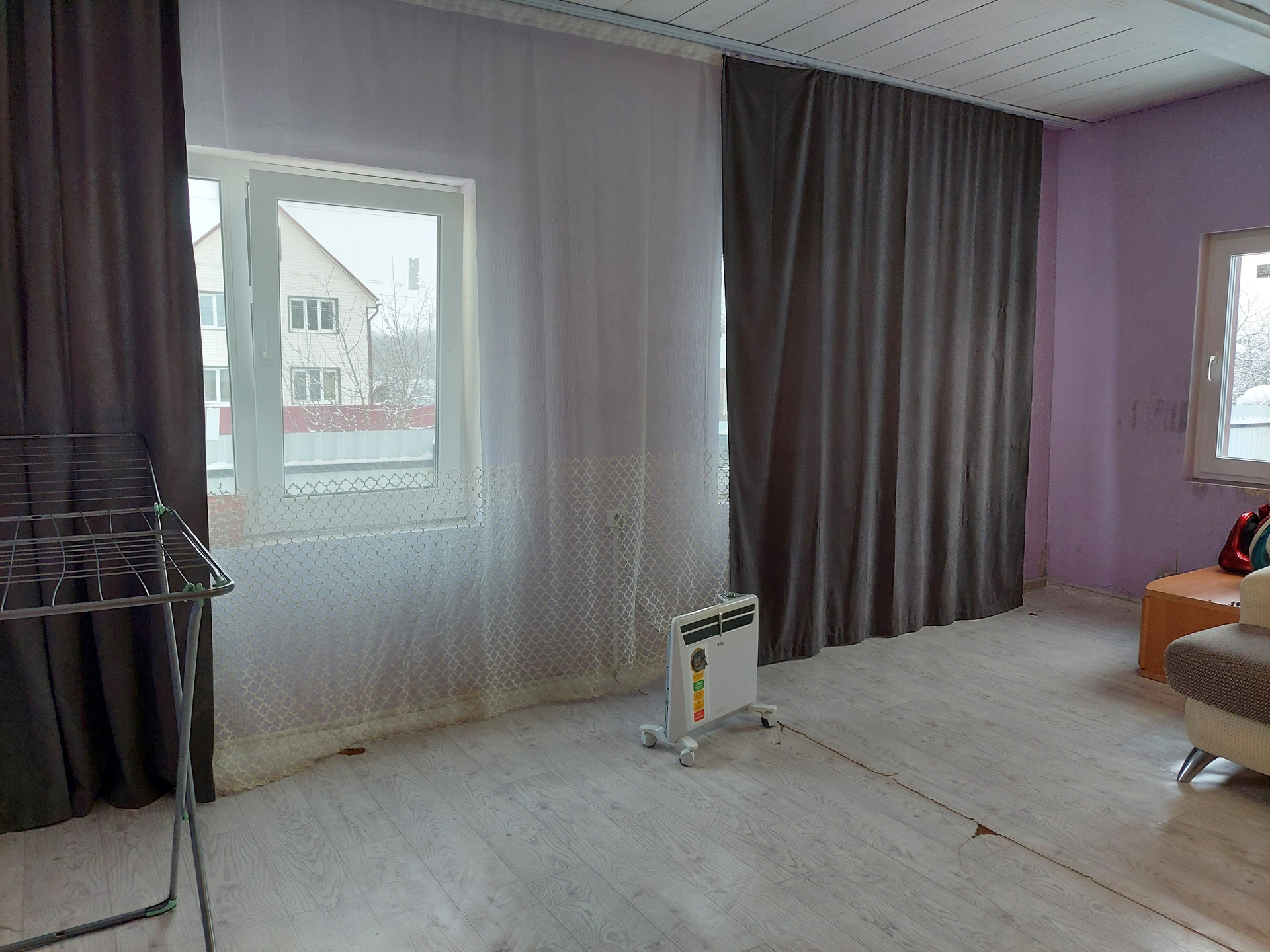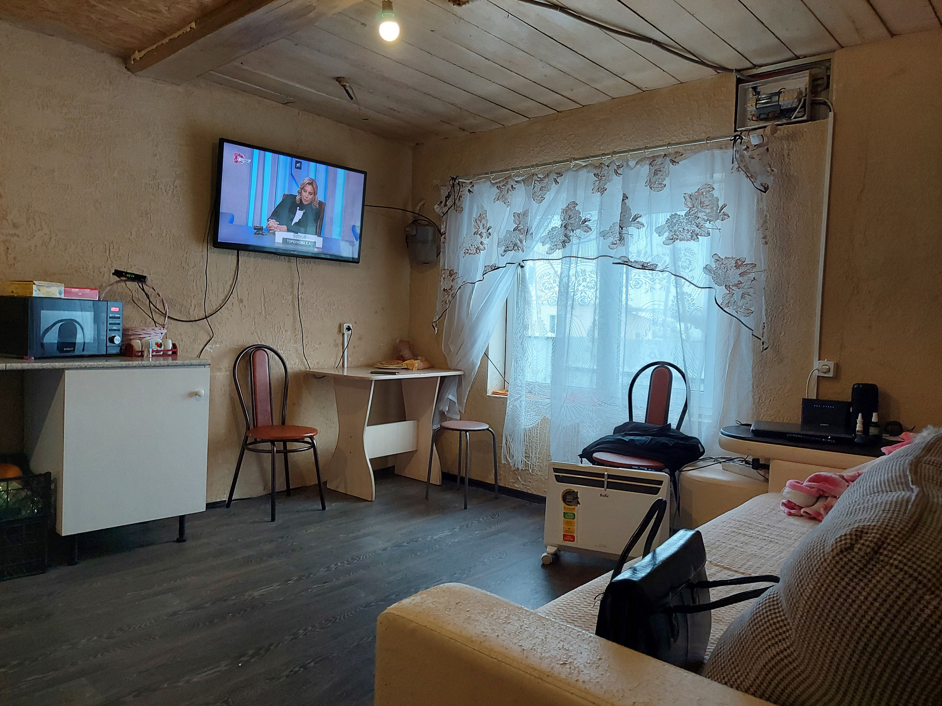 Дом из бревна, на ленточном бетонном фундаменте. Крыша из металлочерепицы. Установлены пластиковые стеклопакеты.