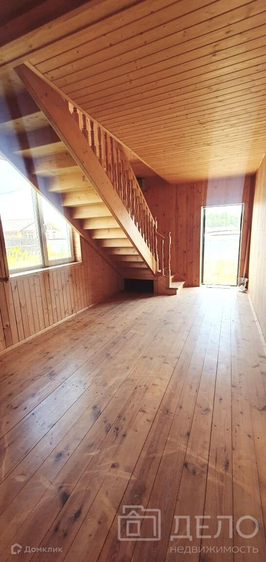 2 этажа, большие светлые комнаты. Площадь кухни -18 кв. м., раздельный санузел, площадь 2-го этажа - 48,5 кв.м. Материал наружных стен дома - бревно, внутренняя отделка - дерево.