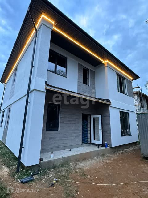 У дома фундамент - монолитная плита усиленная бетонными наливными сваями, ж/б перекрытия, кровля шатровая, покрытие металлочерепица, окна пластиковые стеклопакеты. В доме уютная гостиная , кухня-столовая с выходом на террасу 18 кв. м, 5 спален ( одна на первом этаже), 2 с/у, котельная, холлы первого и второго этажей.