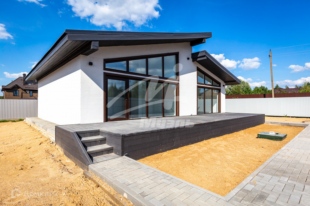Арт. 28329307 Предлагаем Вашему вниманию  дом современной архитектуры 110 кв.м., построен из газосиликатного блока, с панорамными окнами и высокими потолками. Все коммуникации подключены: эл-во 15 кВт, канализация и водоснабжение центральные,  отопление электро-котел, теплые полы. Вся сантехника установлена. Магистральный газ по границе участка.