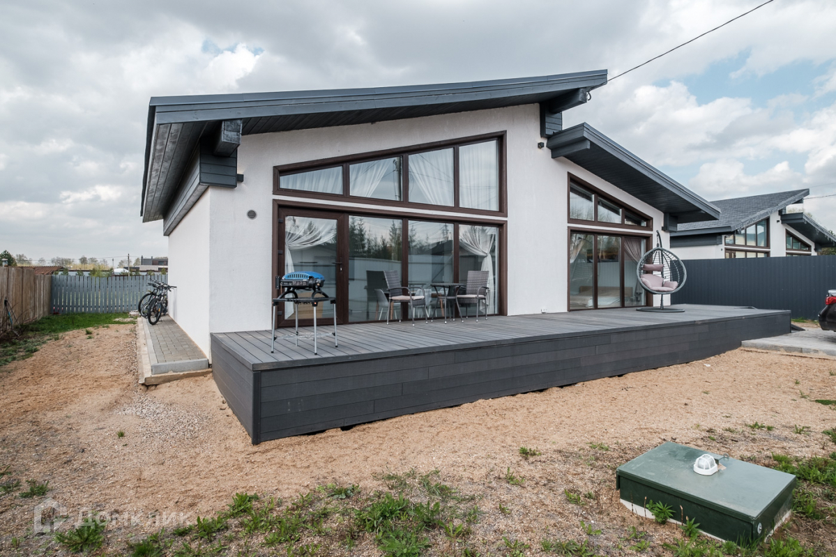 Теплые водяные полы по всей площади дома. Высокие потолки, панорамные окна и выход на террасу.