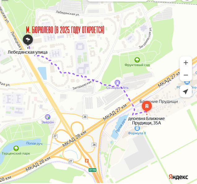 м. Домодедовская 15 мин на автобусе, в будущем, до станции м. Бирюлево 15 минут пешком. Удобный выезд на МКАД через Липецкую улицу или Каширское шоссе.