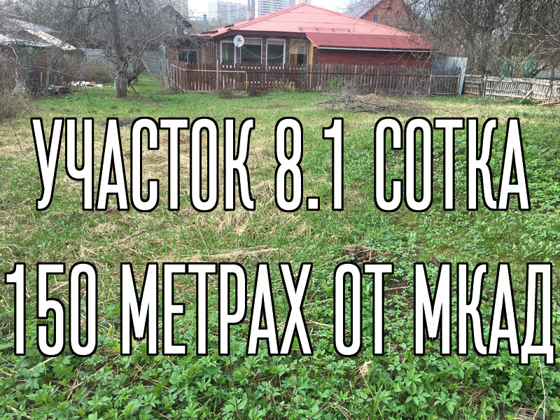 Участок 8.1 сотка под ИЖС, большая часть почти прямоугольной формы (см. фото). Асфальт до ворот. Огорожен со стороны улицы профнастилом, между соседями деревянный забор.