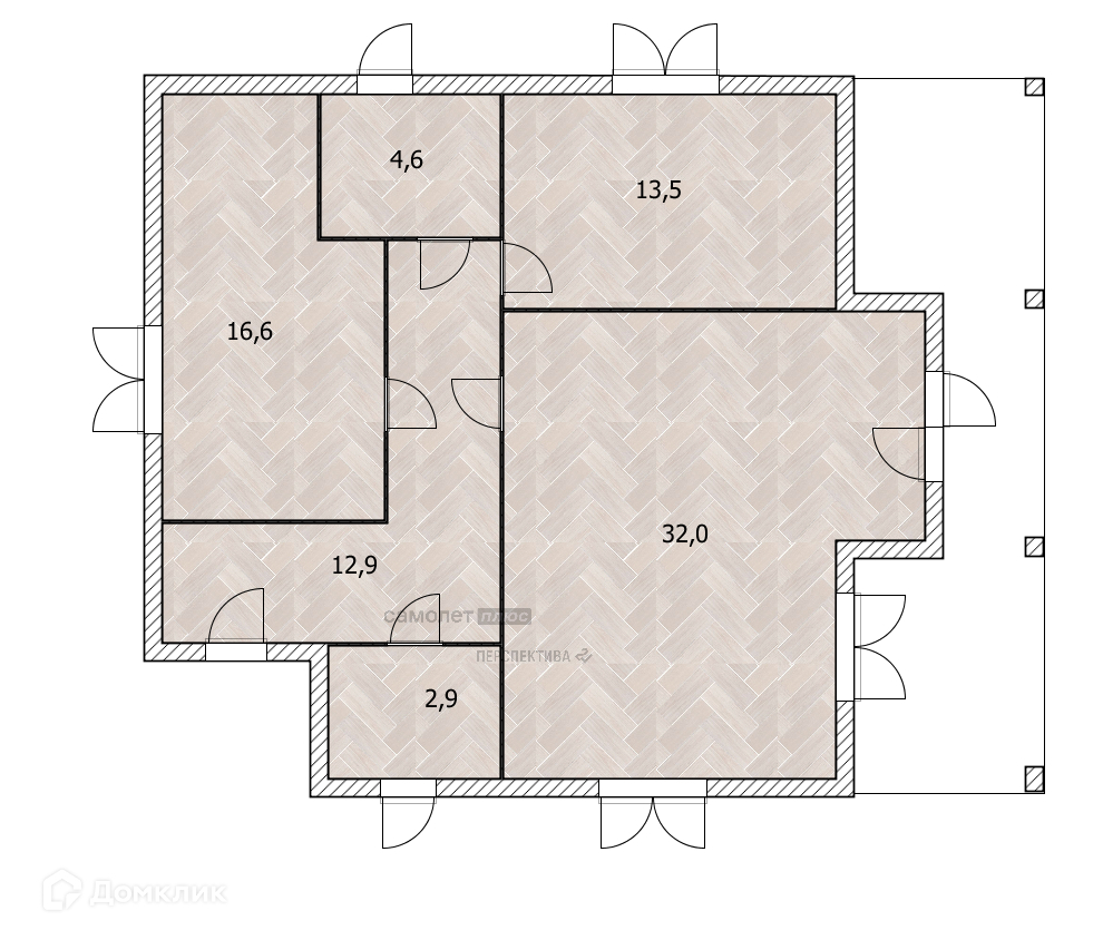 Жилая площадь 60 м2