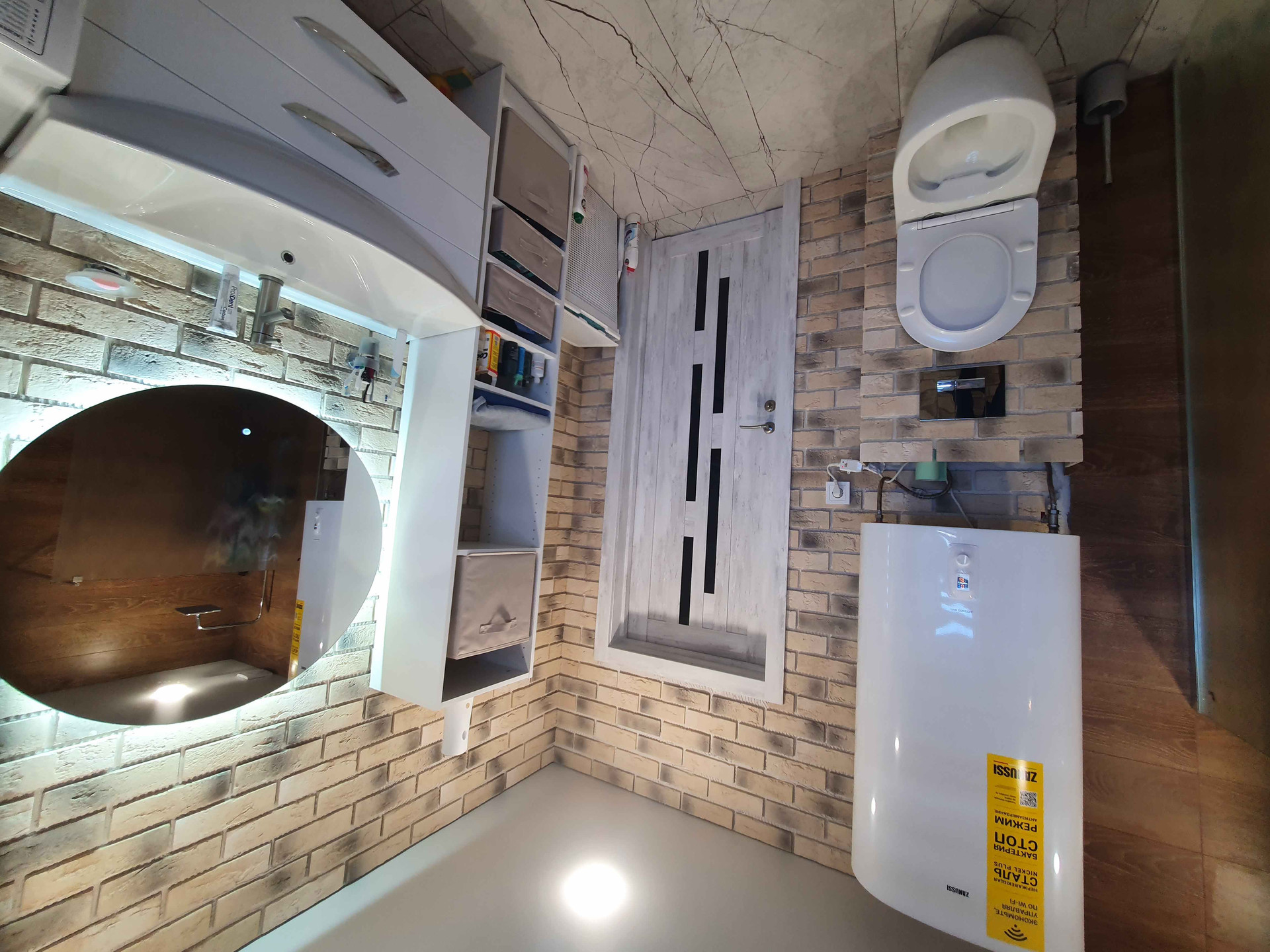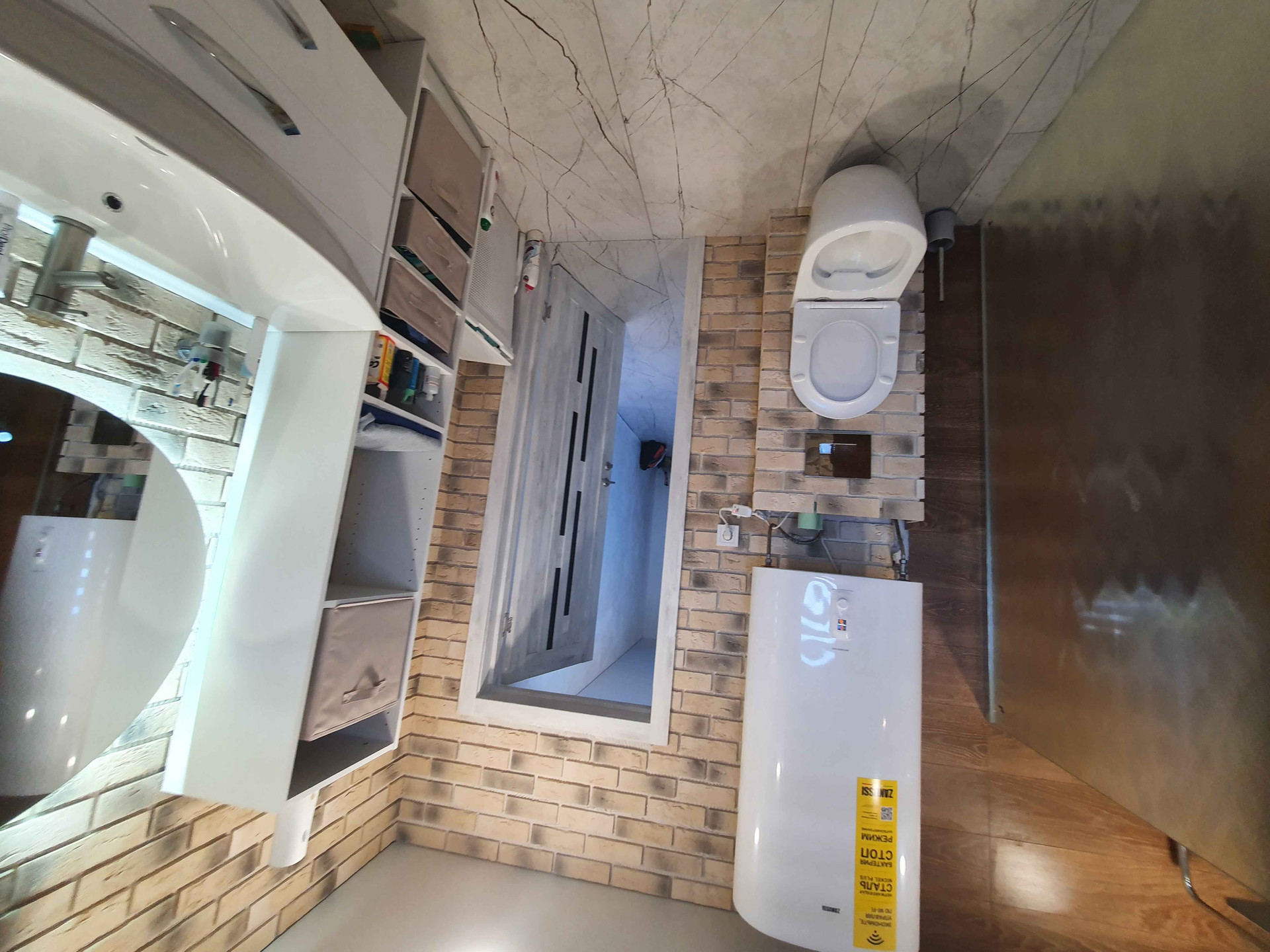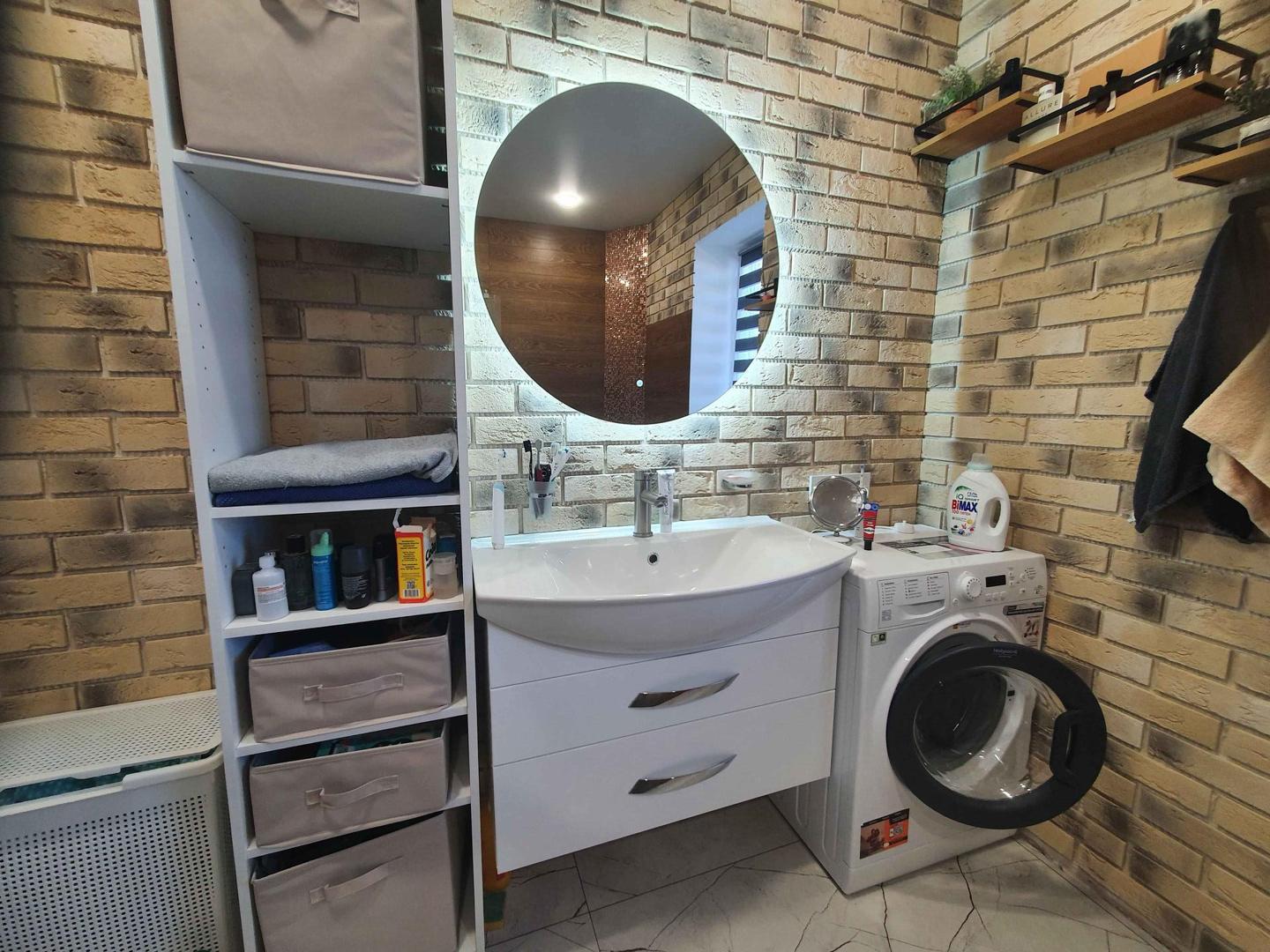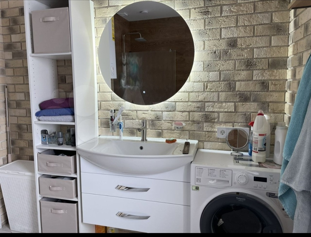 В совмещённом санузле установлен электрический котел, за счет которого идет подача горячей воды.