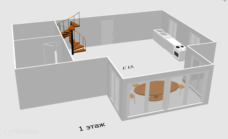 На первом этаже: кухня-гостинная, сан. узел, бойлерная.