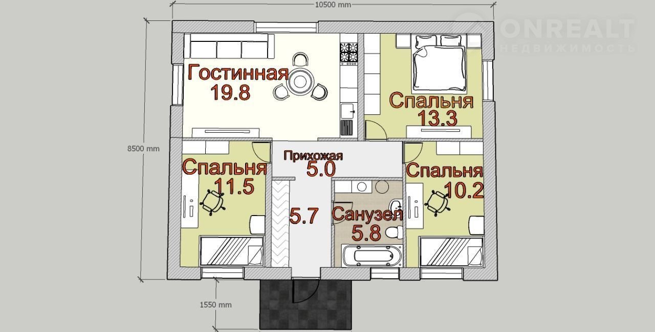 Общая площадь 70 м2