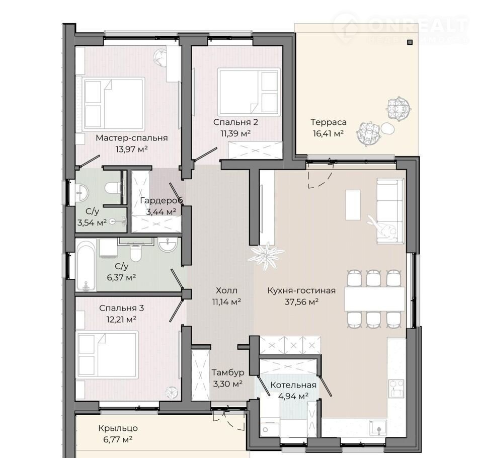 Общая площадь 124 м2