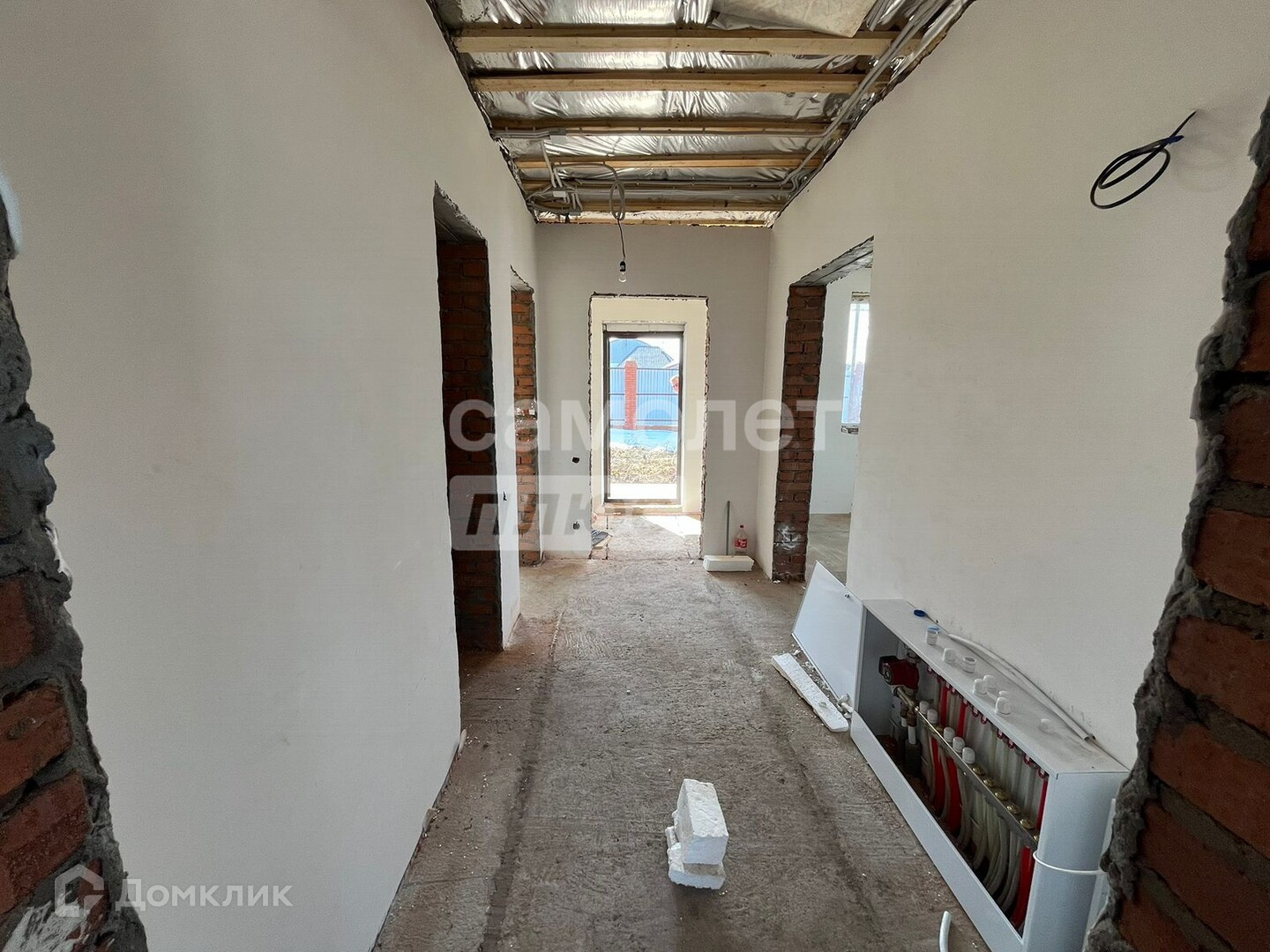По всему первому этажу теплый пол.