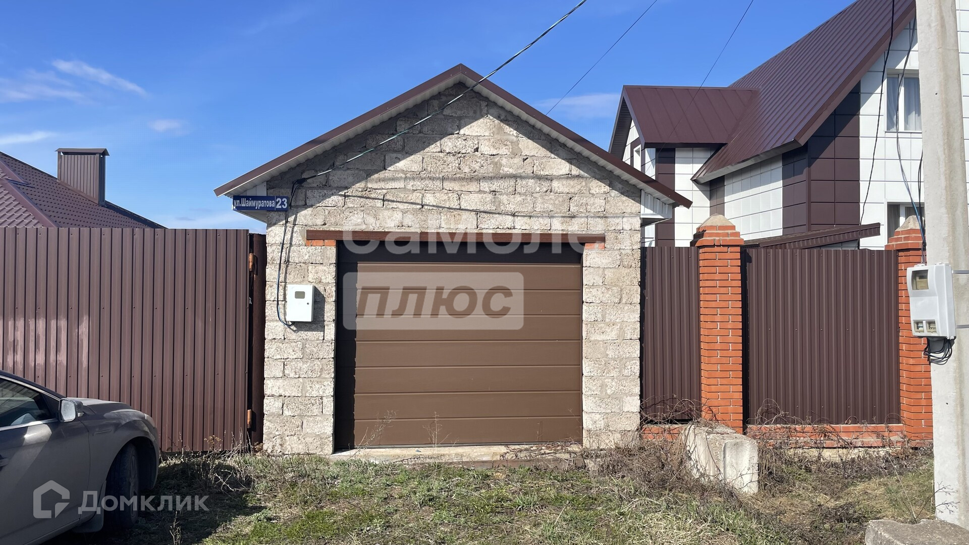 На территории построен гараж на две машины с автоматическими воротами.