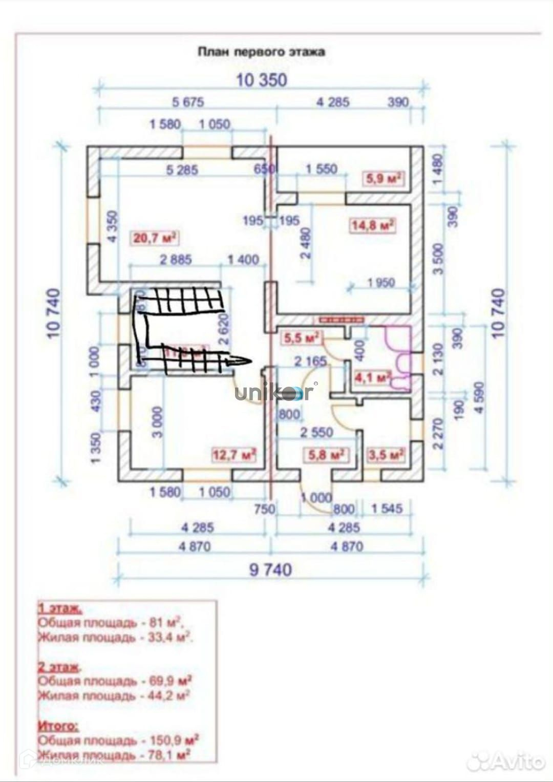 Общая площадь 151 м2