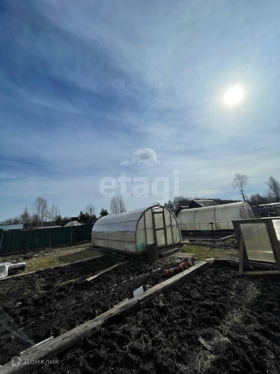 На участке есть летний домик (Спальное место, стол, стулья, посуда), теплица, сарай (весь с/х инвентарь остается)