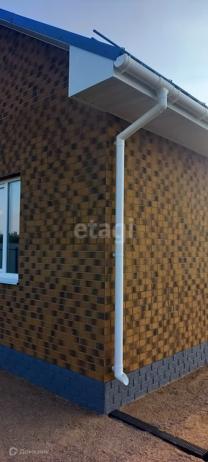 Материал стен - газобетонные блоки 40 см. Дом облицован гибким клинкером.