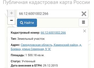 Продам земельный участок ИЖС в д. Боевка за домом 40 по ул. Калинина. Кадастровый номер 66:12:6001002:114. |