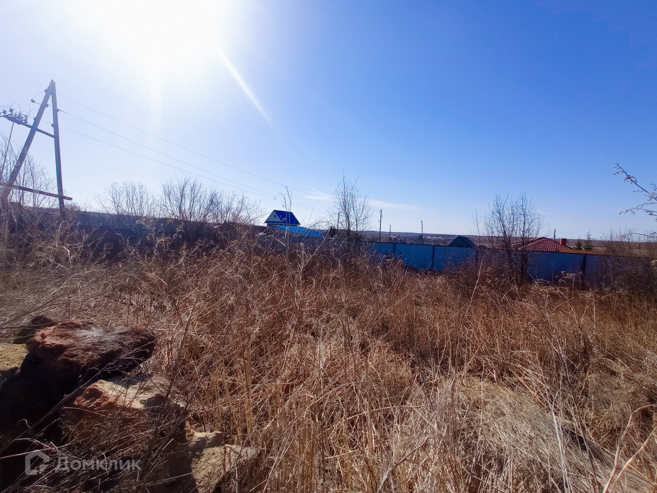 Участок зарос, нет забора, границы установлены.
