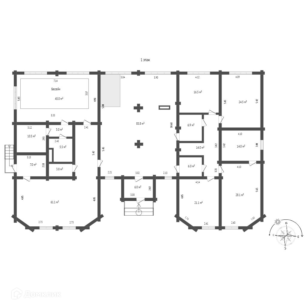 - Цокольный этаж (монолит) представляет собой большое количество технических помещений